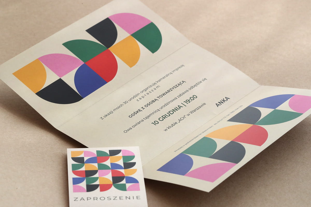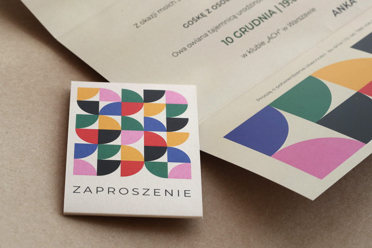 Bauhaus eleganckie zaproszenia urodzinowe z obwolutą