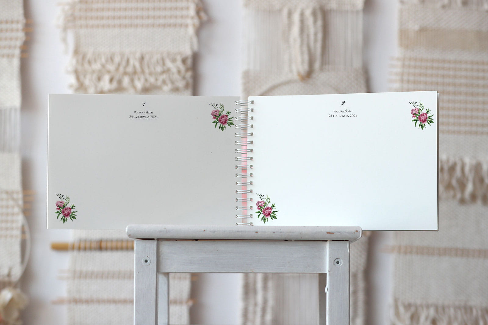 Pierwszą stronę okładki zdobimy wybranym wzorem, imionami i datą ślubu pary młodej.