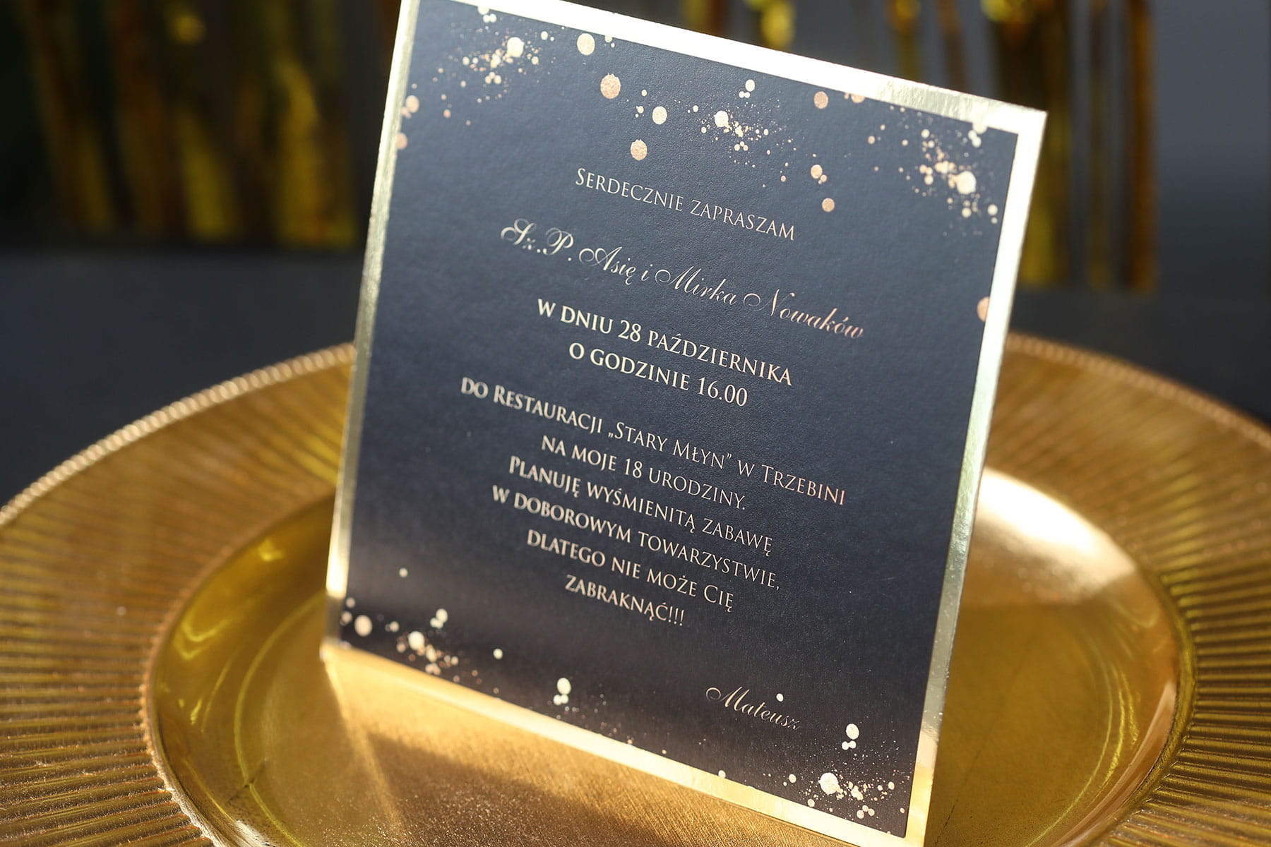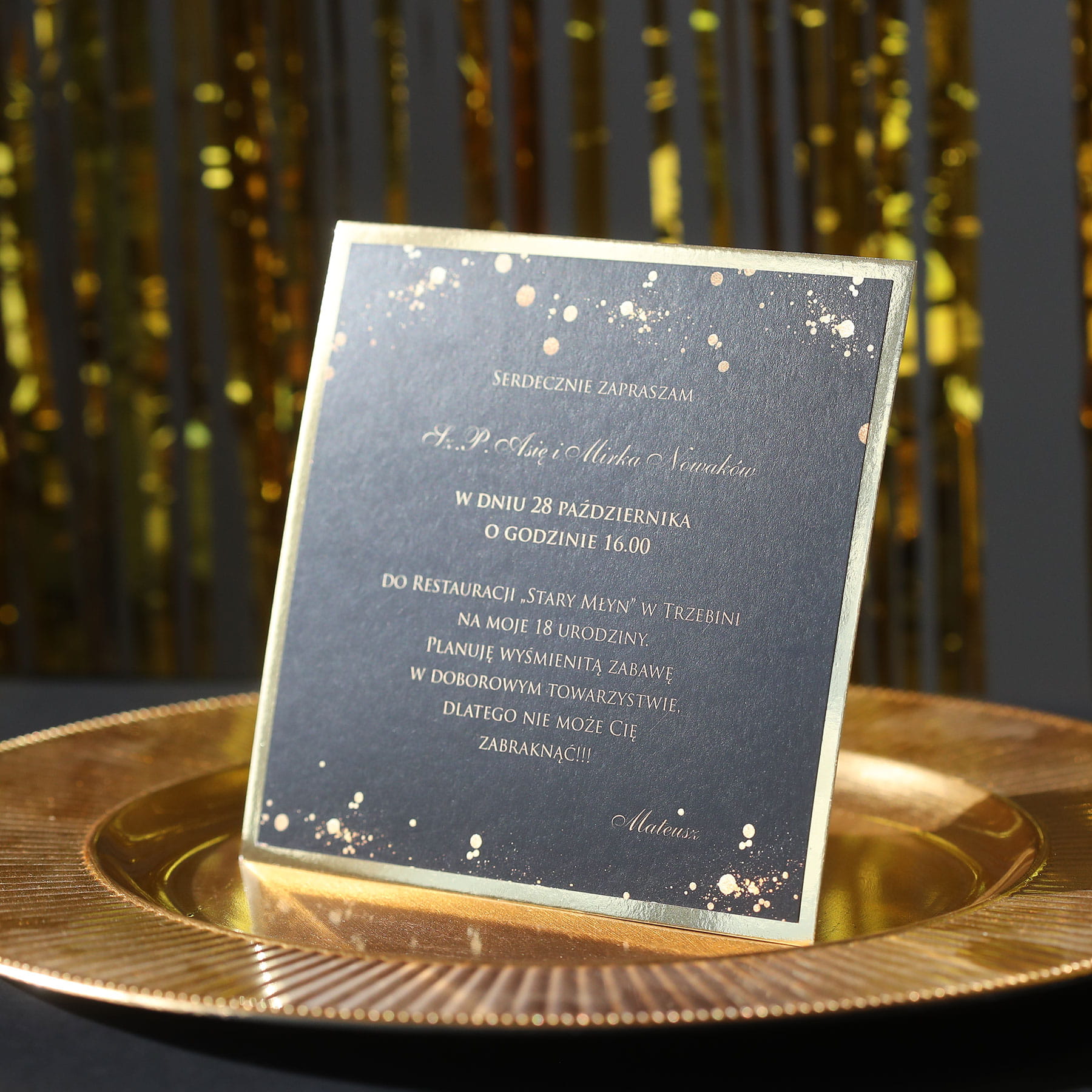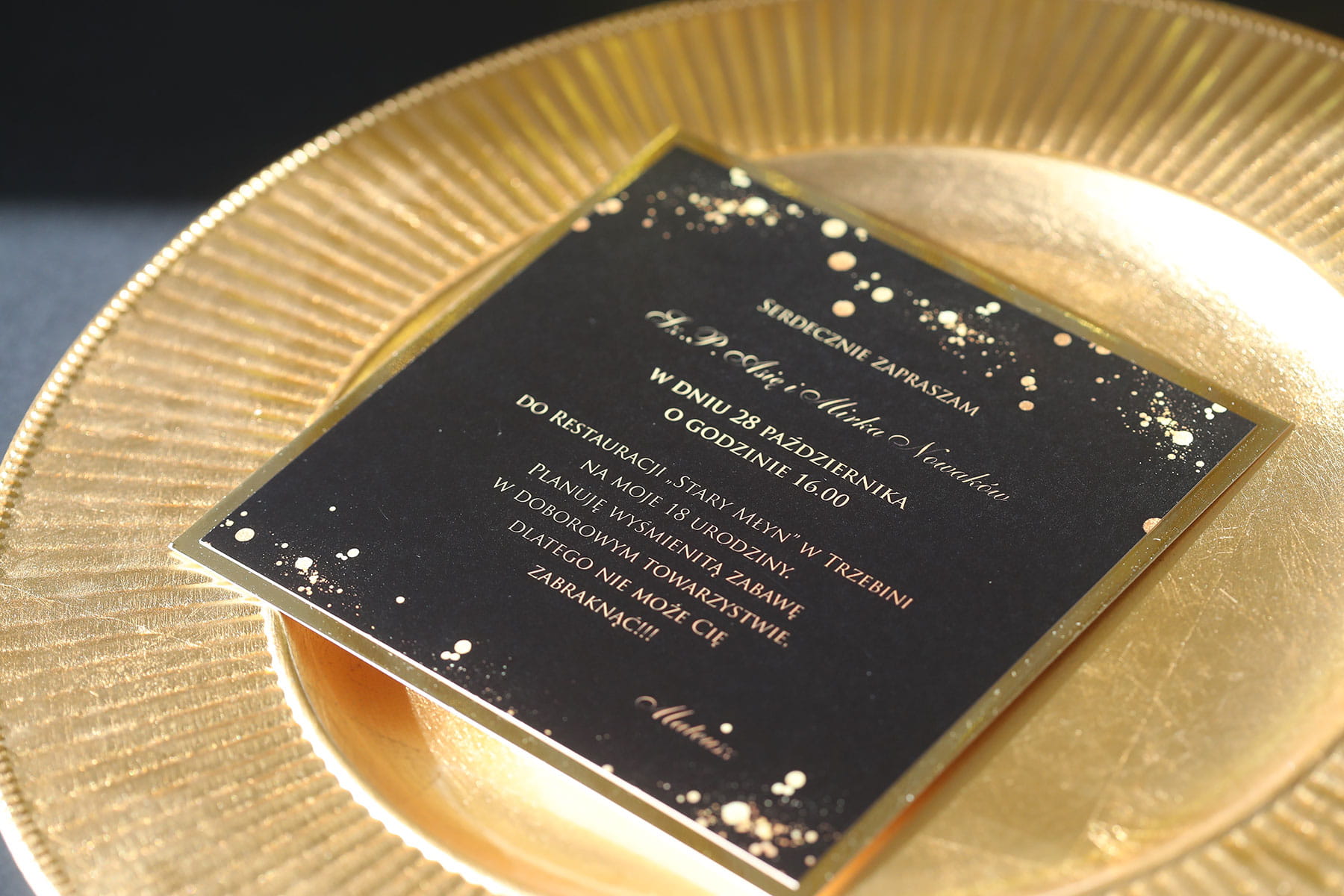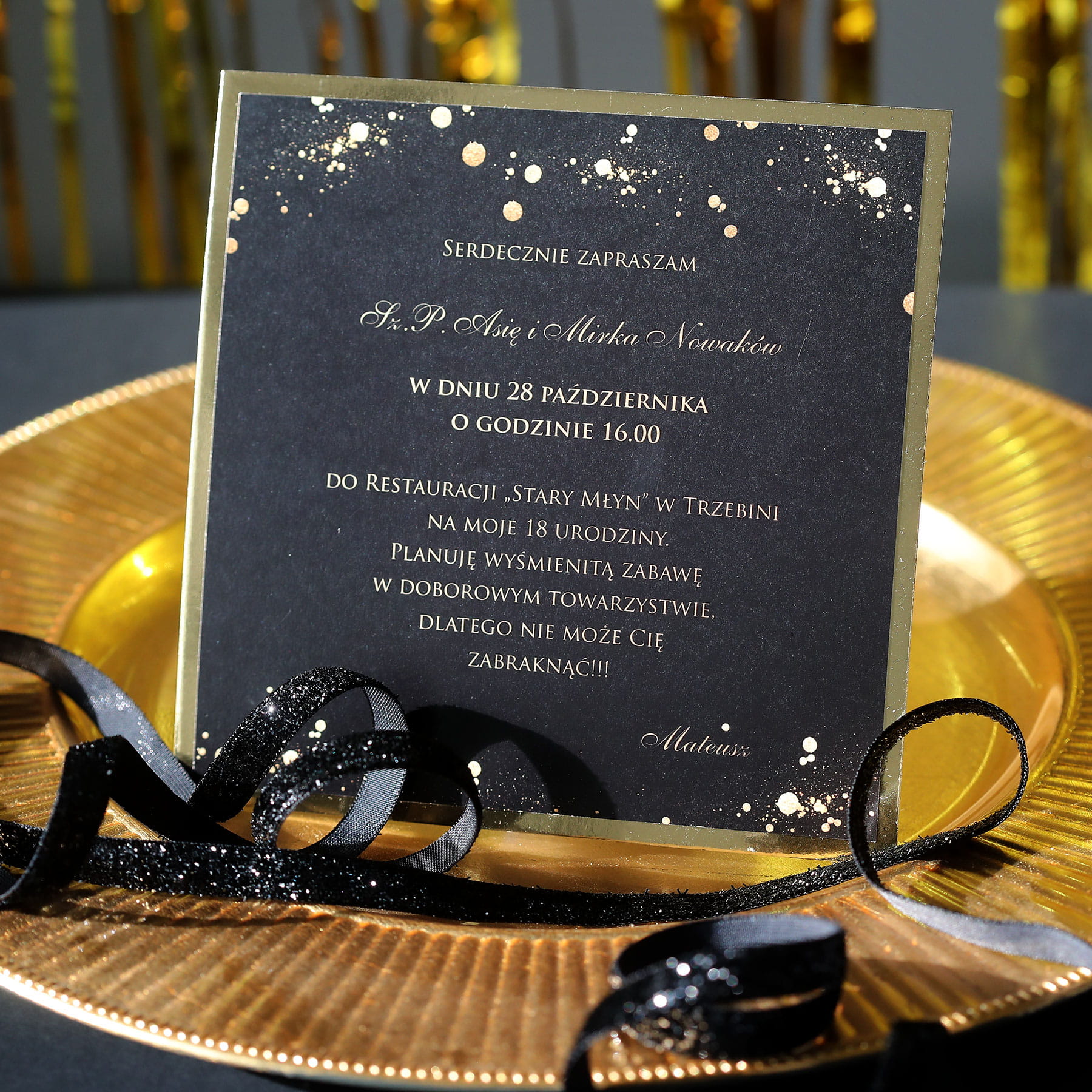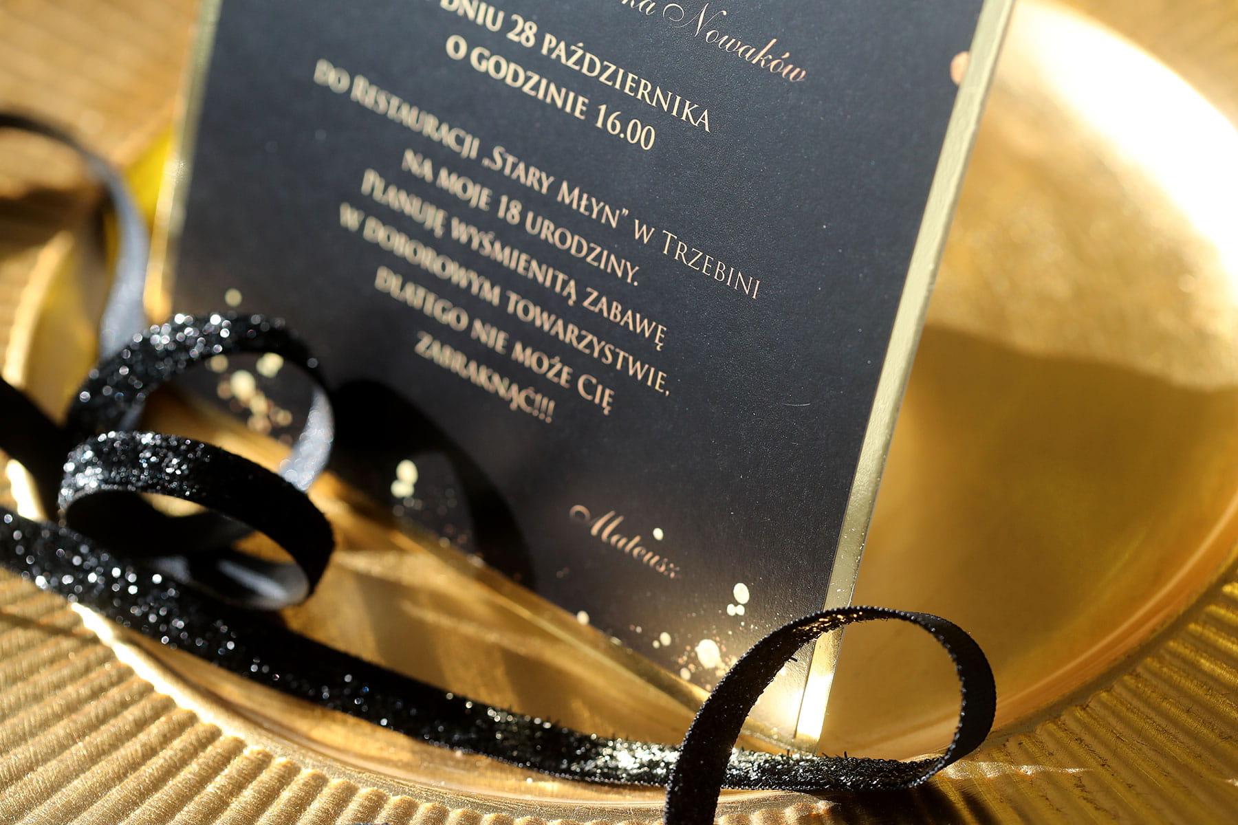Czarno-złote zaproszenia na 18 urodziny