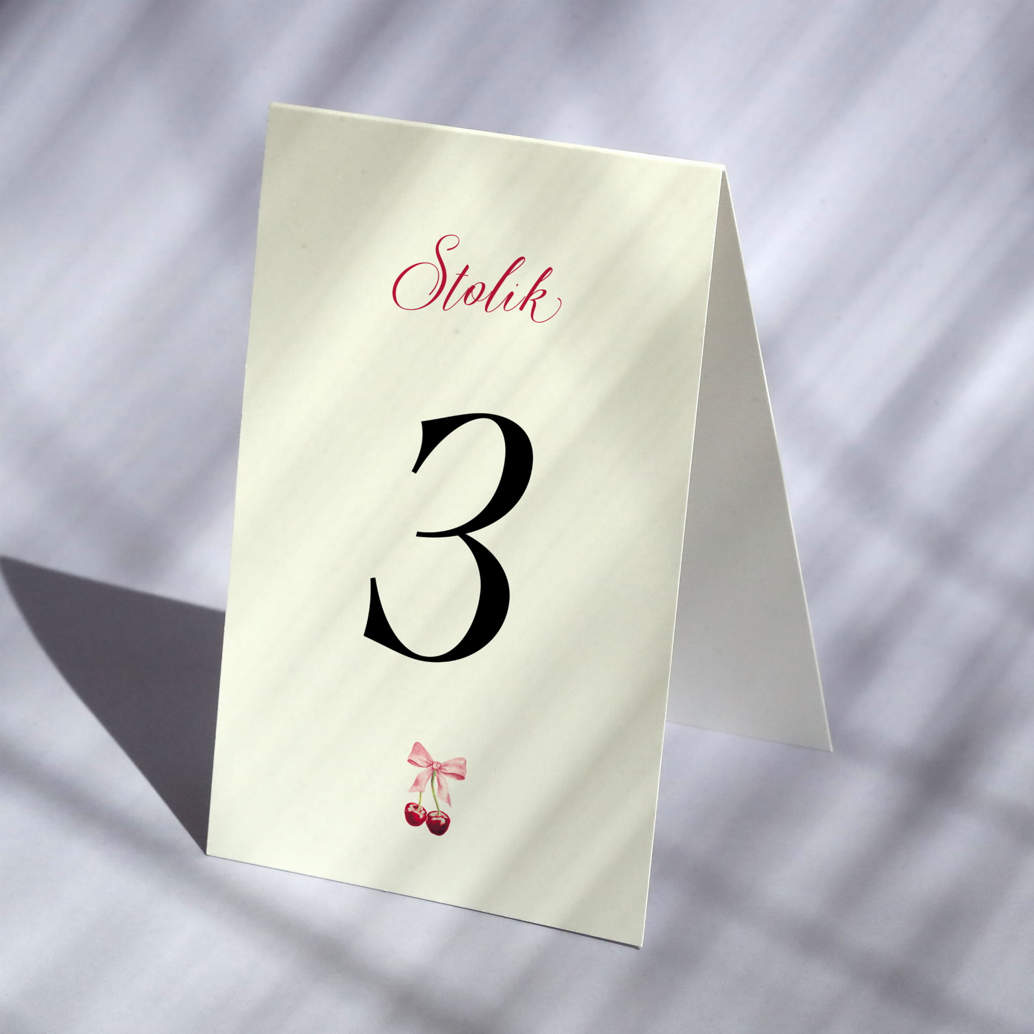 Delikatne numerki na stół z różową kokardką z wisienkami