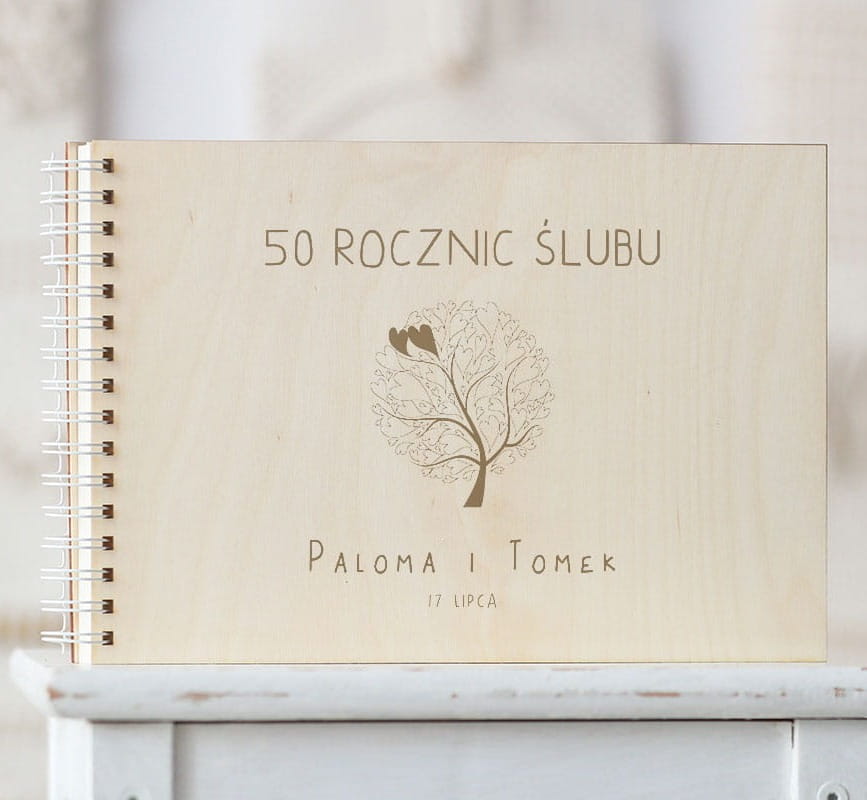 Kronika 50 rocznic ślubu w drewnianej oprawie