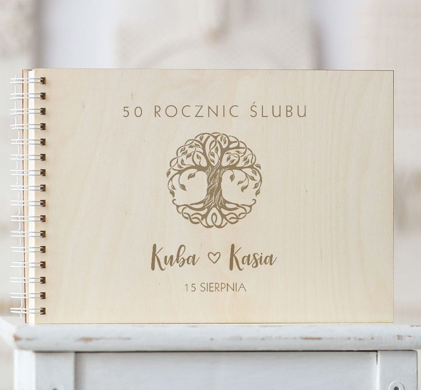 Kronika 50 rocznic ślubu w drewnianej oprawie