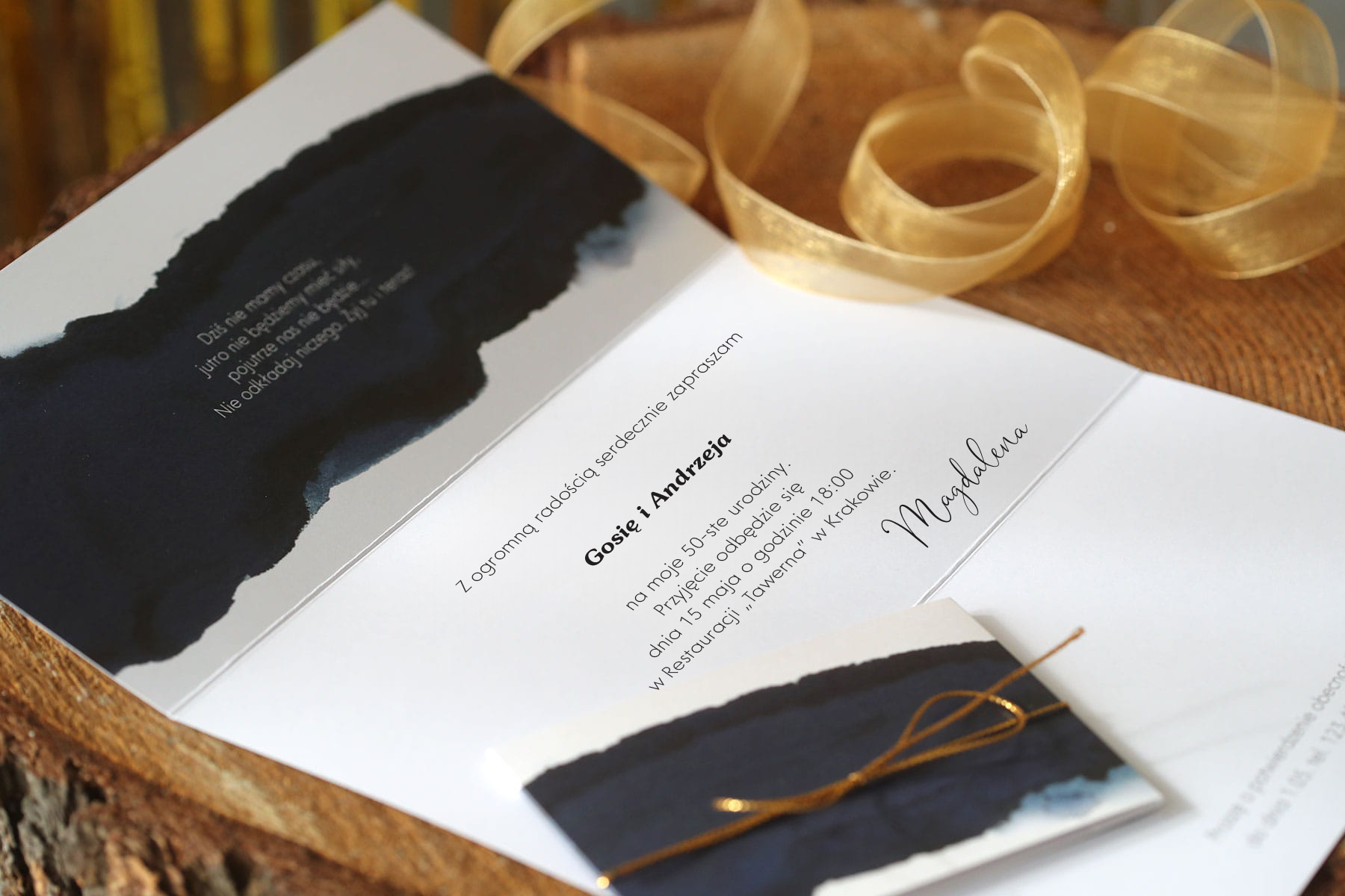 Zaproszenia na 50 urodziny z granatową obwolutą