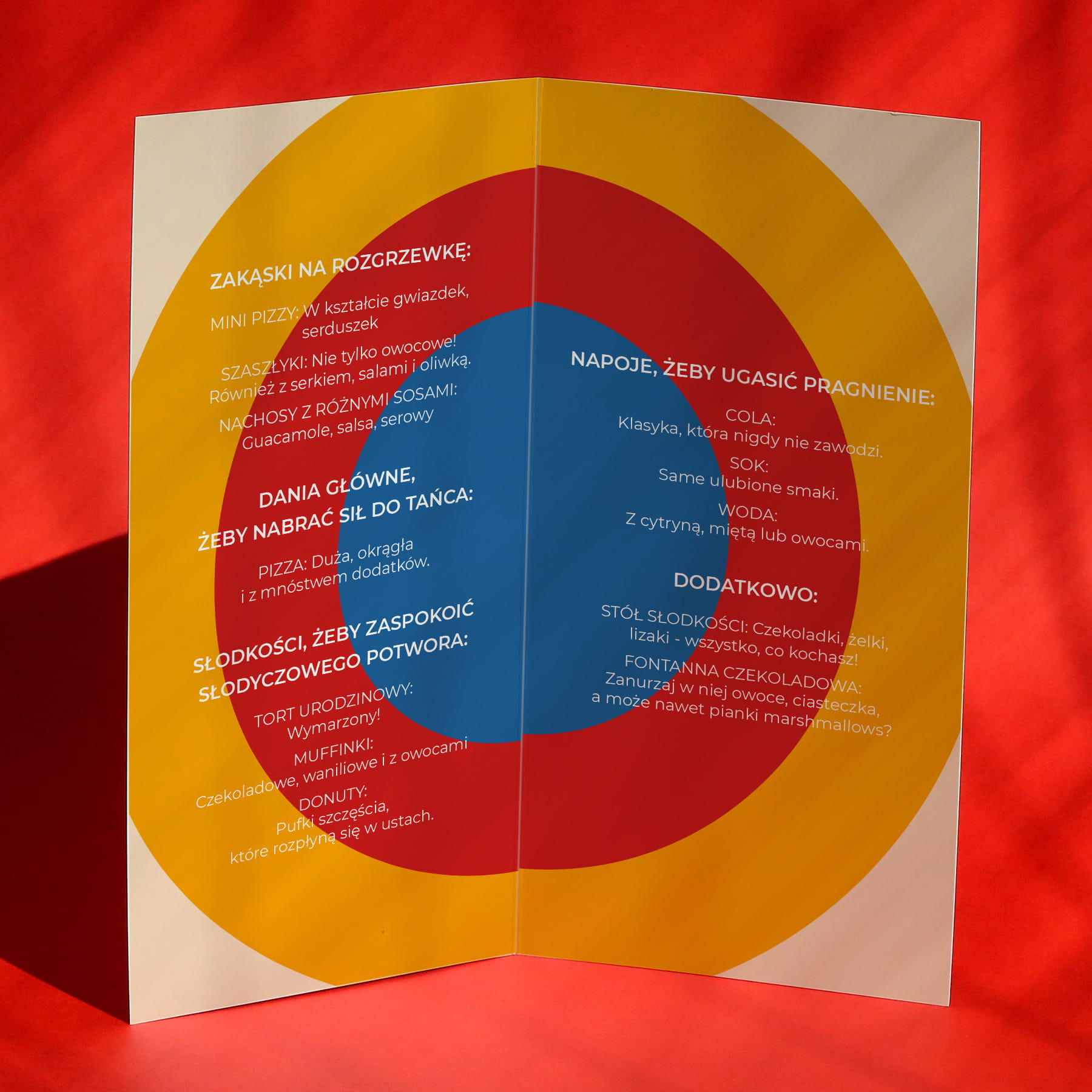 Karta menu z kolorową grafiką w stylu Bauhaus