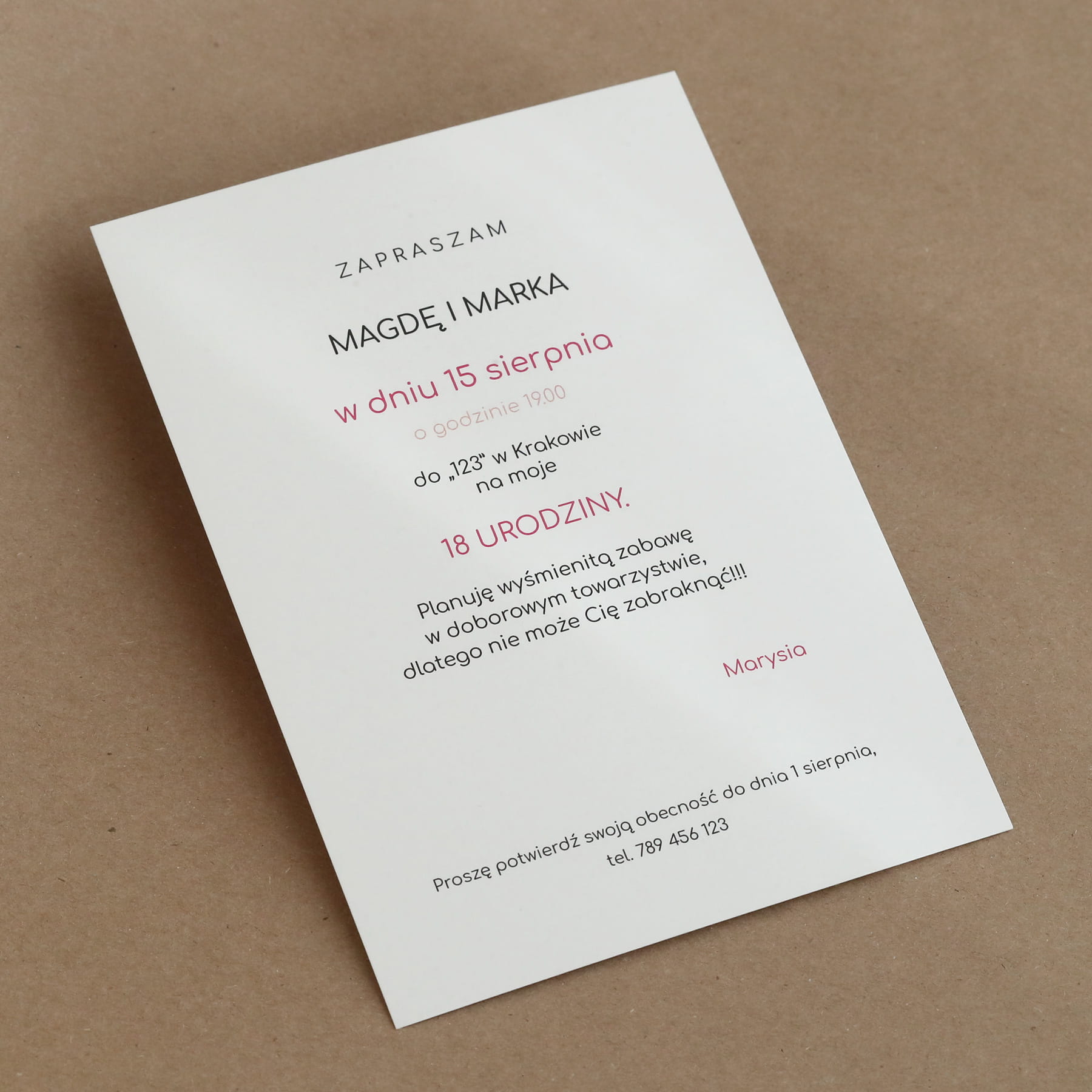 - To zaproszenie jest jednokartkowe, zadrukowane z obu stron.