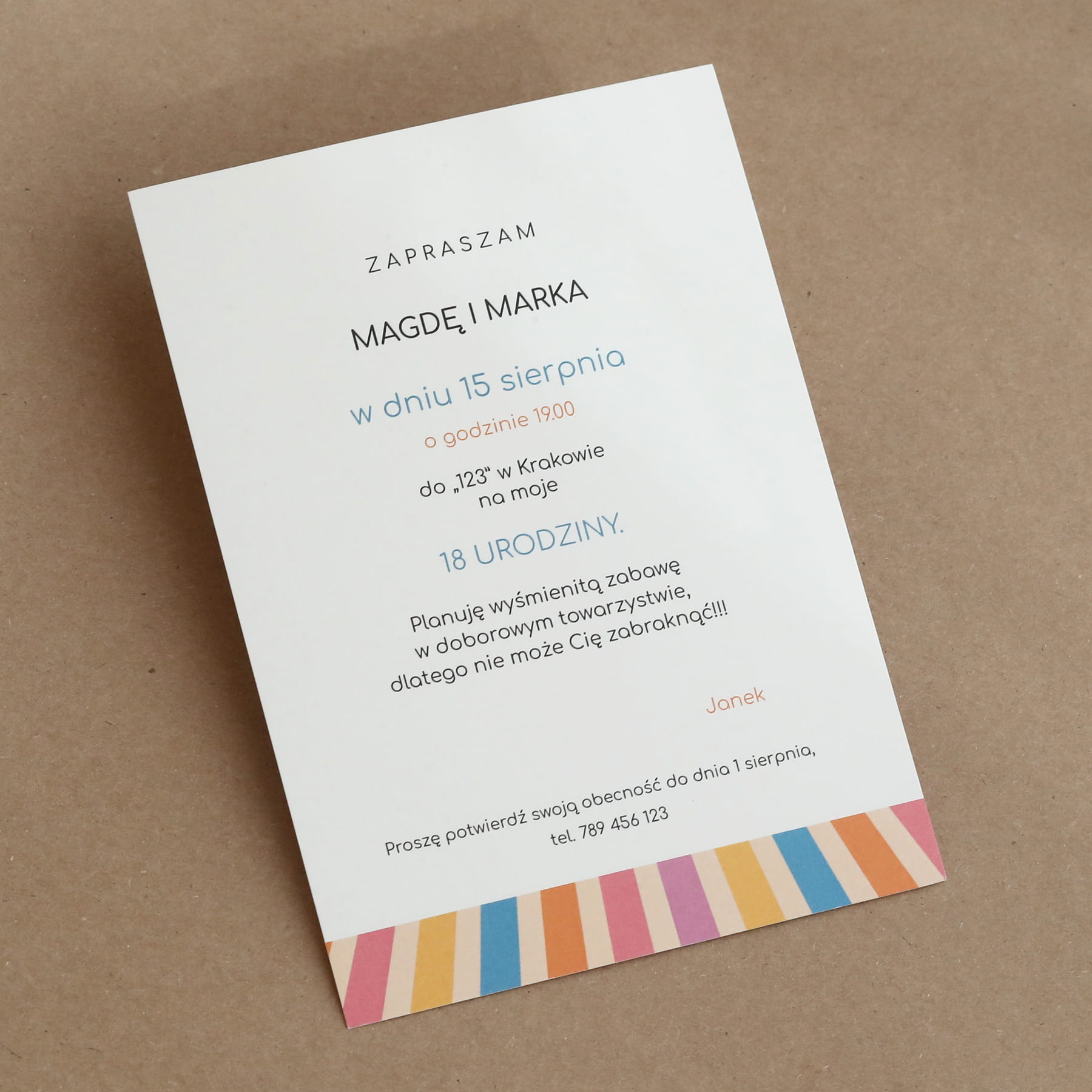 Kolorowe zaproszenia na 18 urodziny