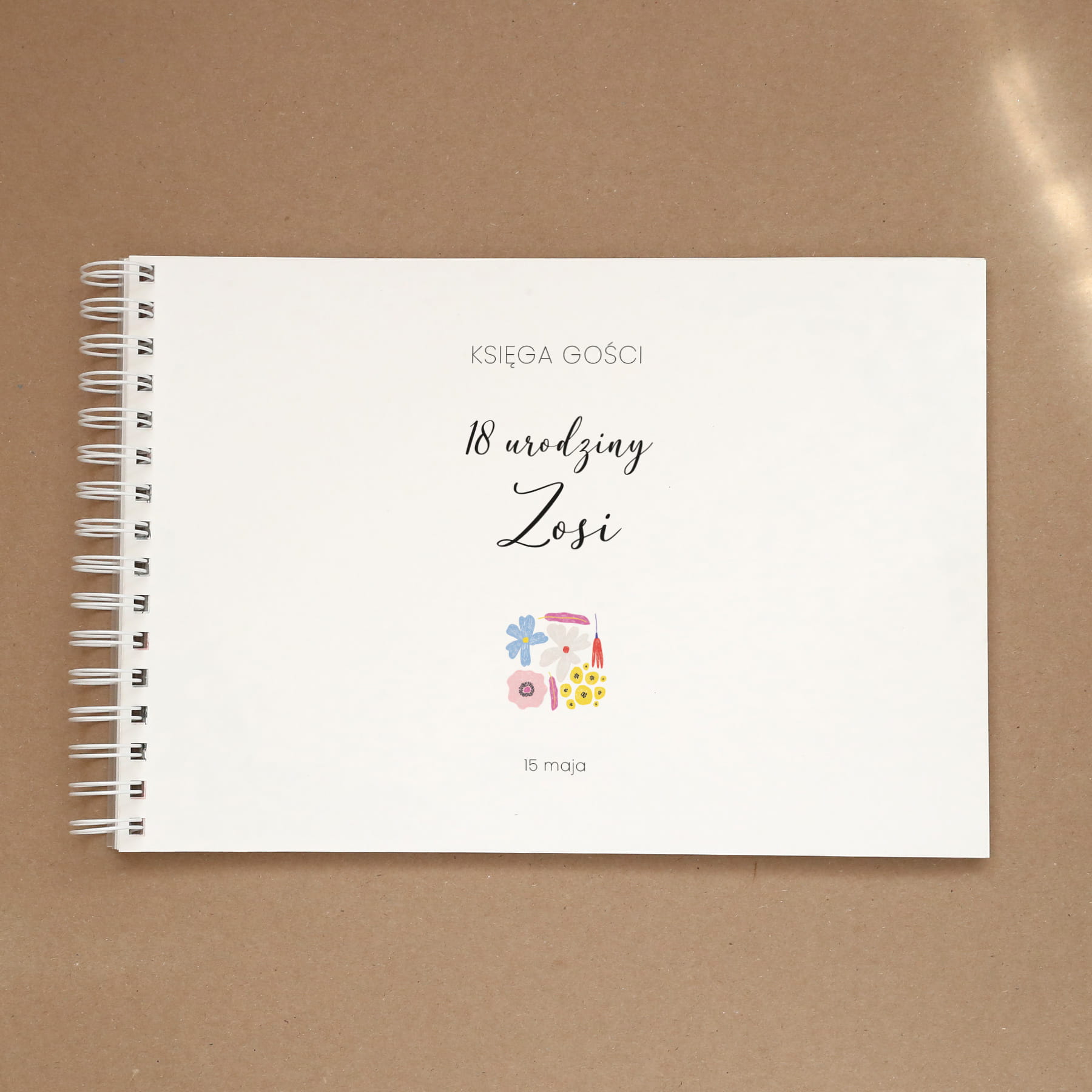 Księga gości na przyjęcie urodzinowe z kolorowymi kwiatami