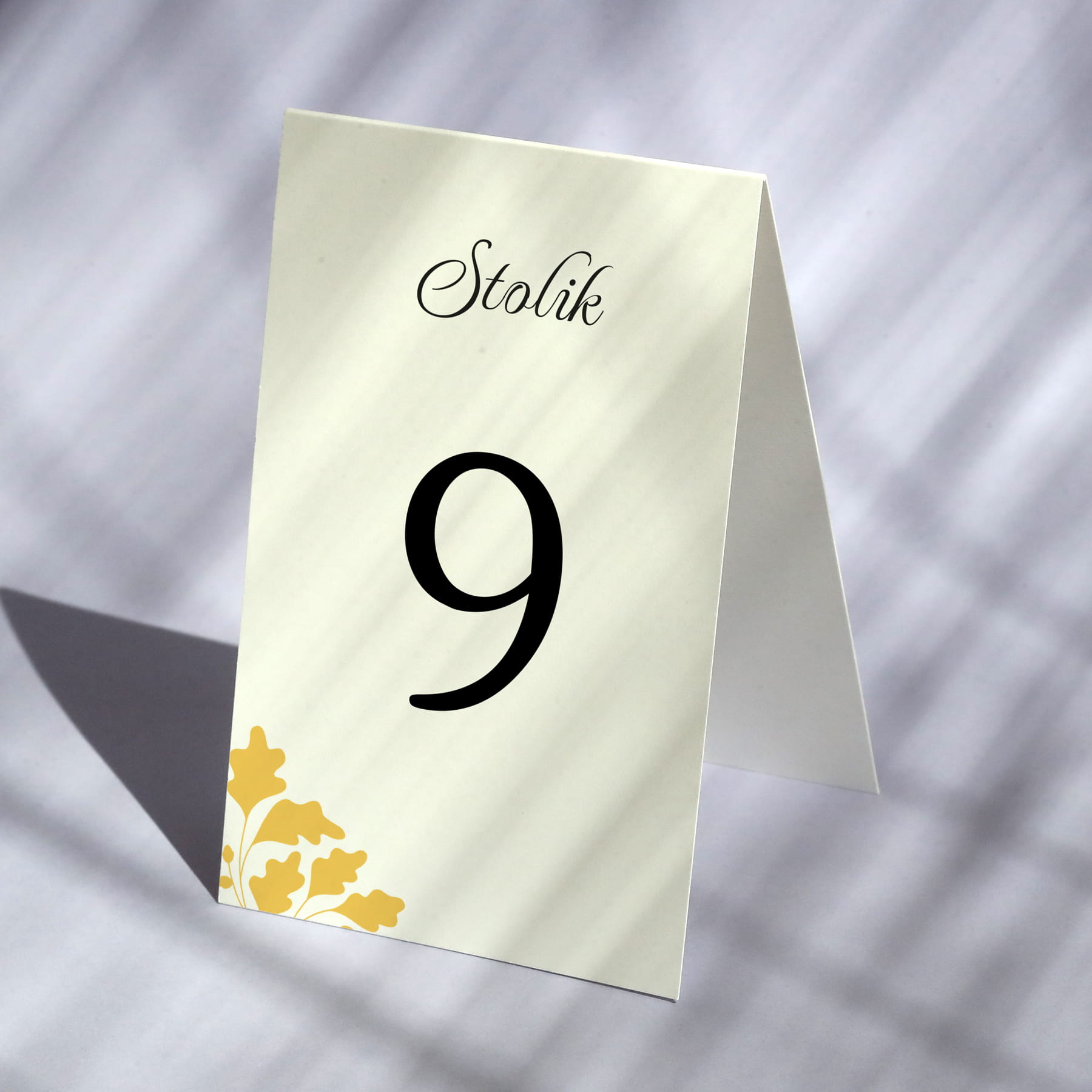 Numerki na stół z żółtą gałązką