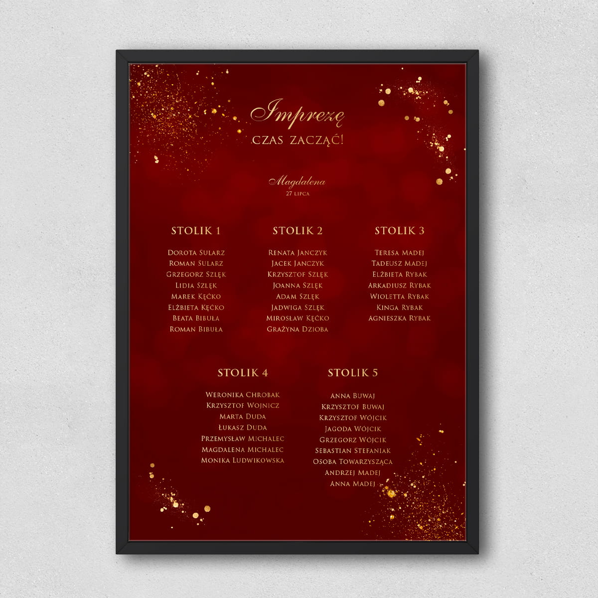 Plan stołów przyjęcia urodzinowego bordowo-złoty