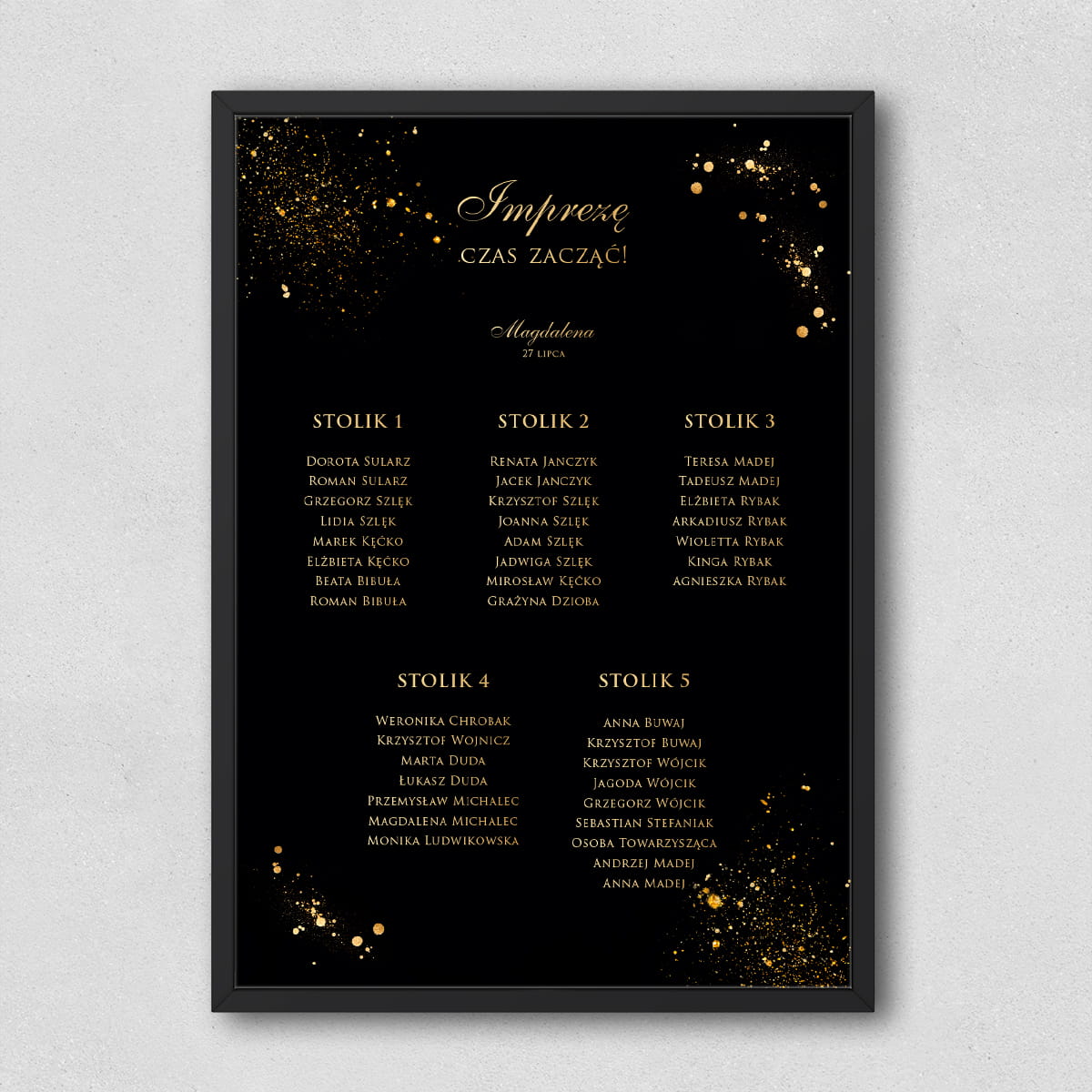 Plan stołów przyjęcia urodzinowego czarno-złoty