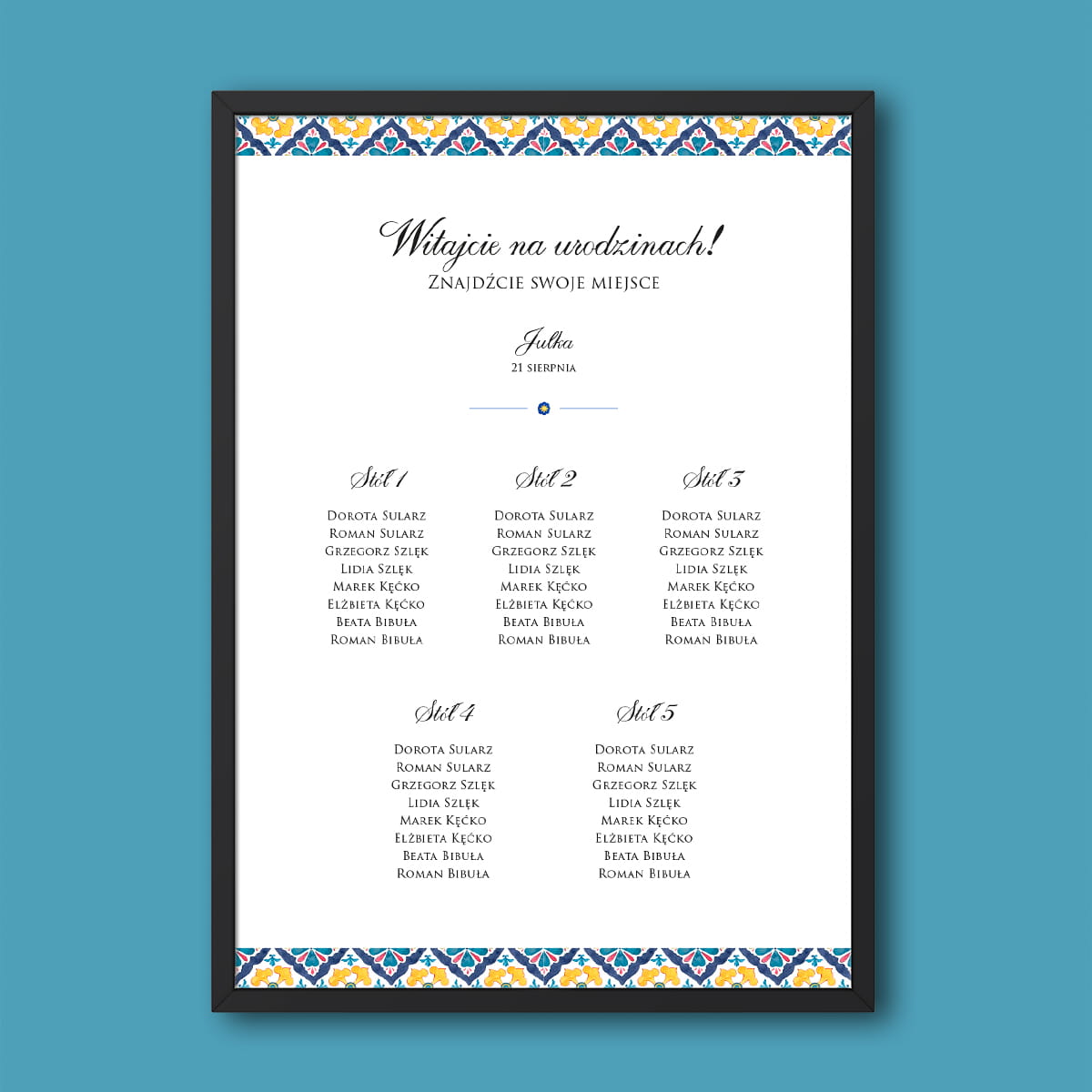Plan stołu - tablica powitalna