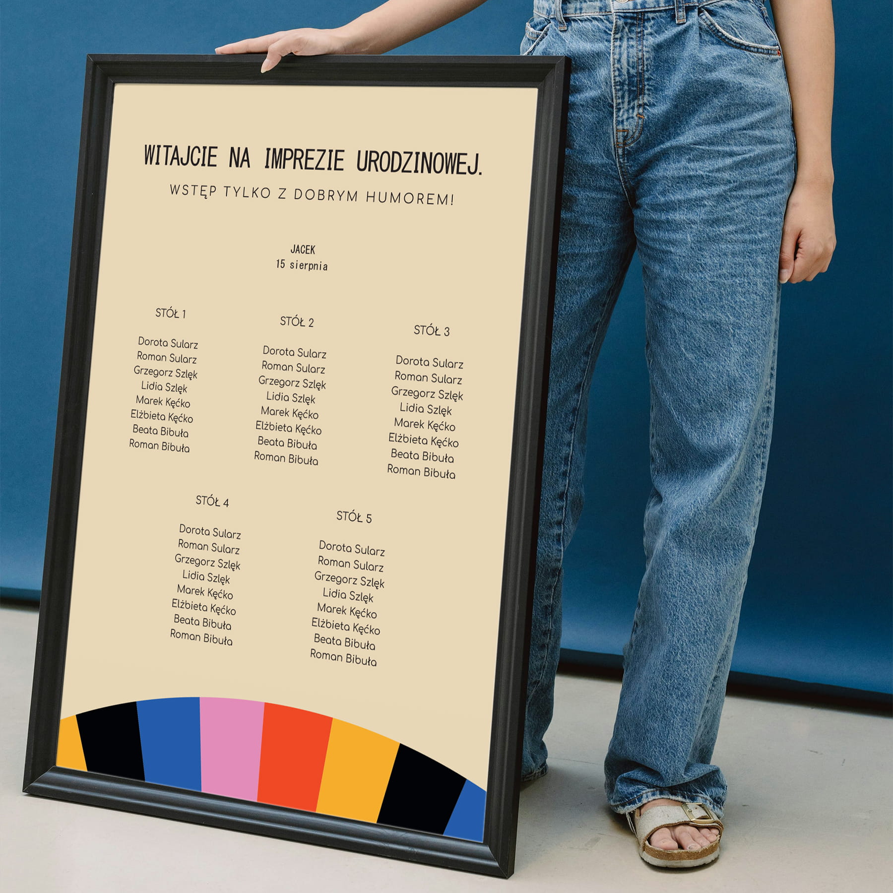 Plan stołu urodzinowego z kolorowym wzorkiem