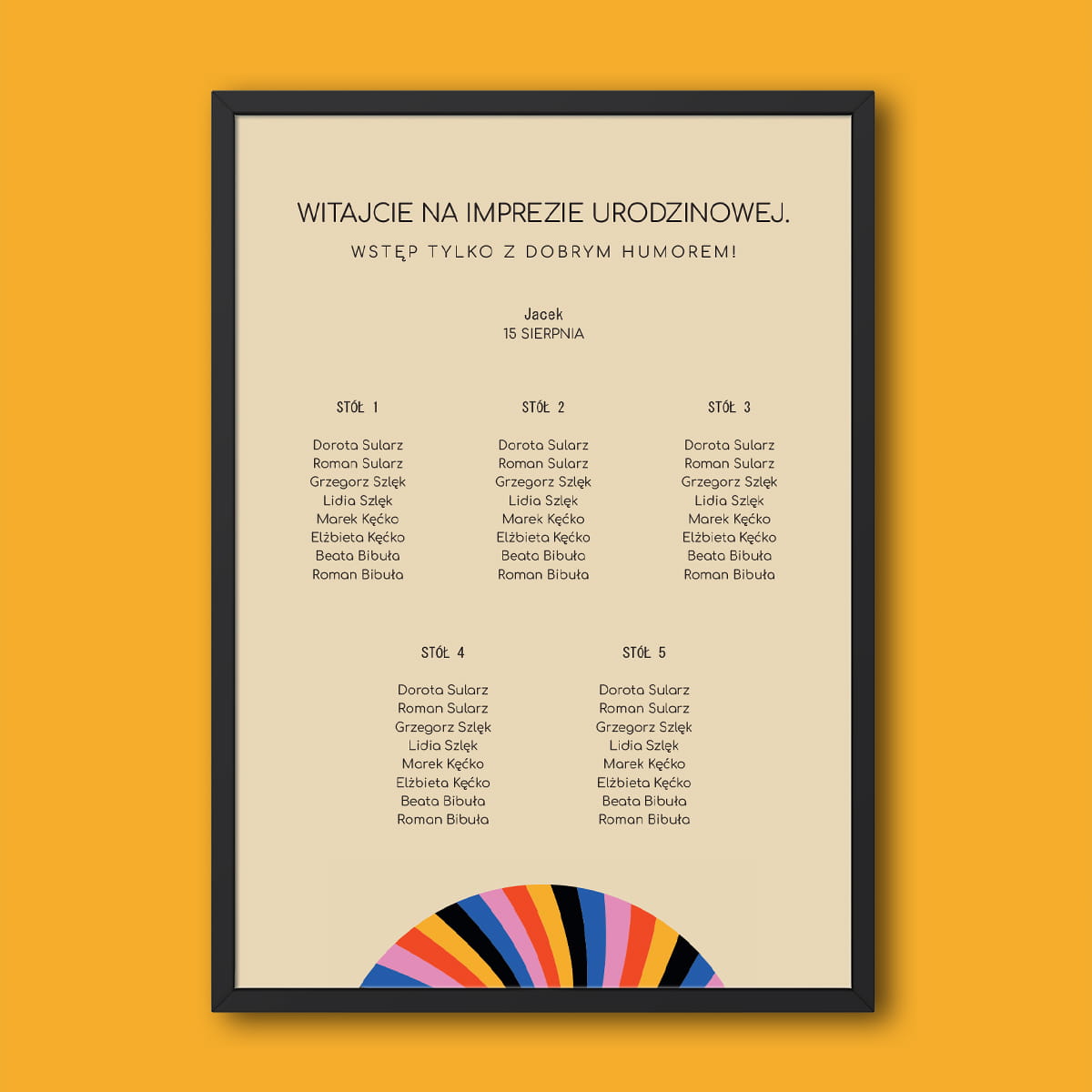 Plan stołu urodzinowego z kolorowym wzorkiem