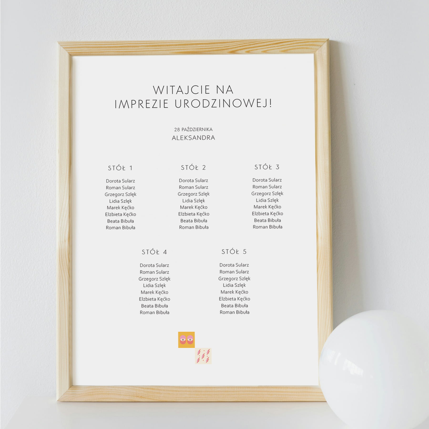 Plan stołów przyjęcia urodzinowego z mozaiką