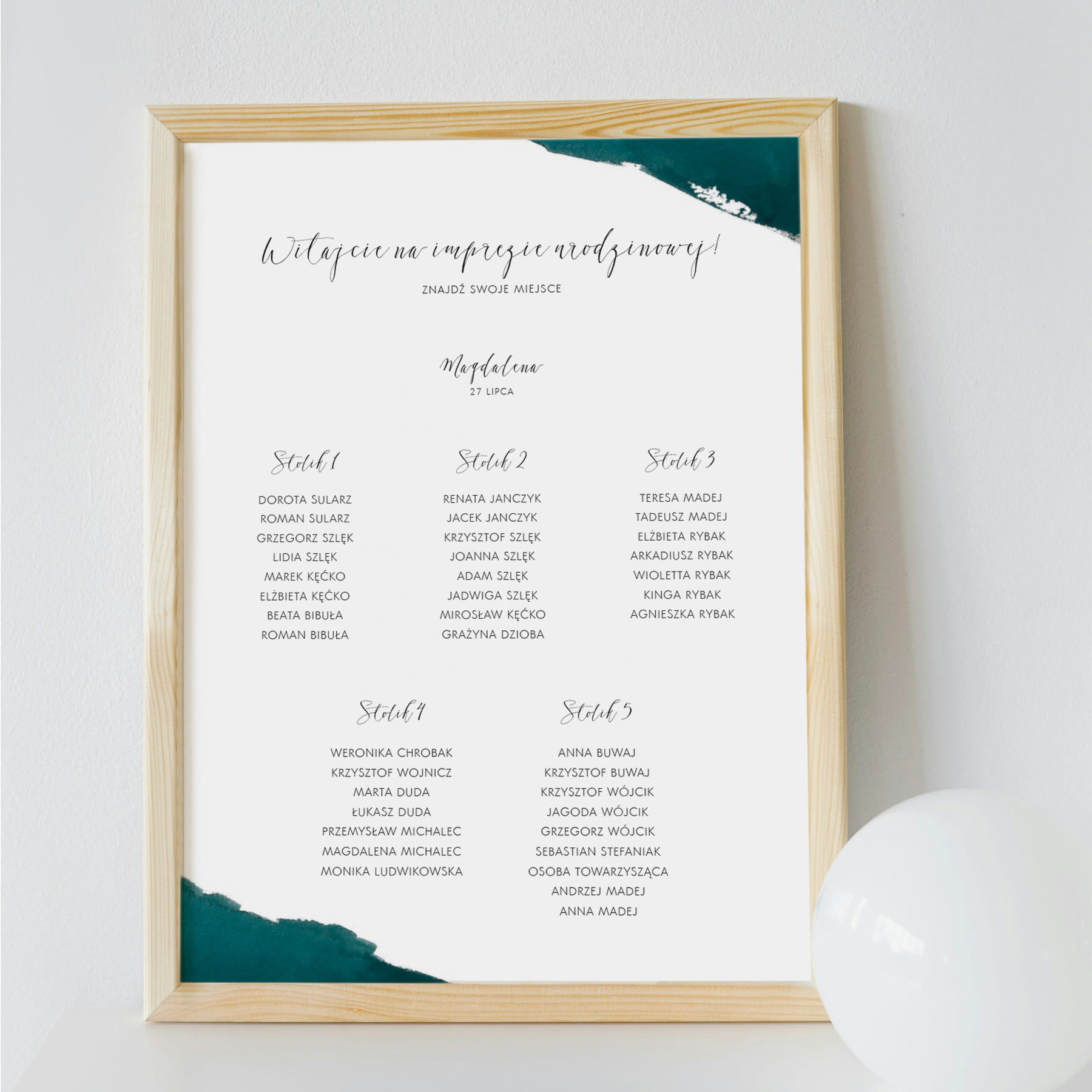 - Montaż: Plan stołów można łatwo umieścić w dowolnej ramie.