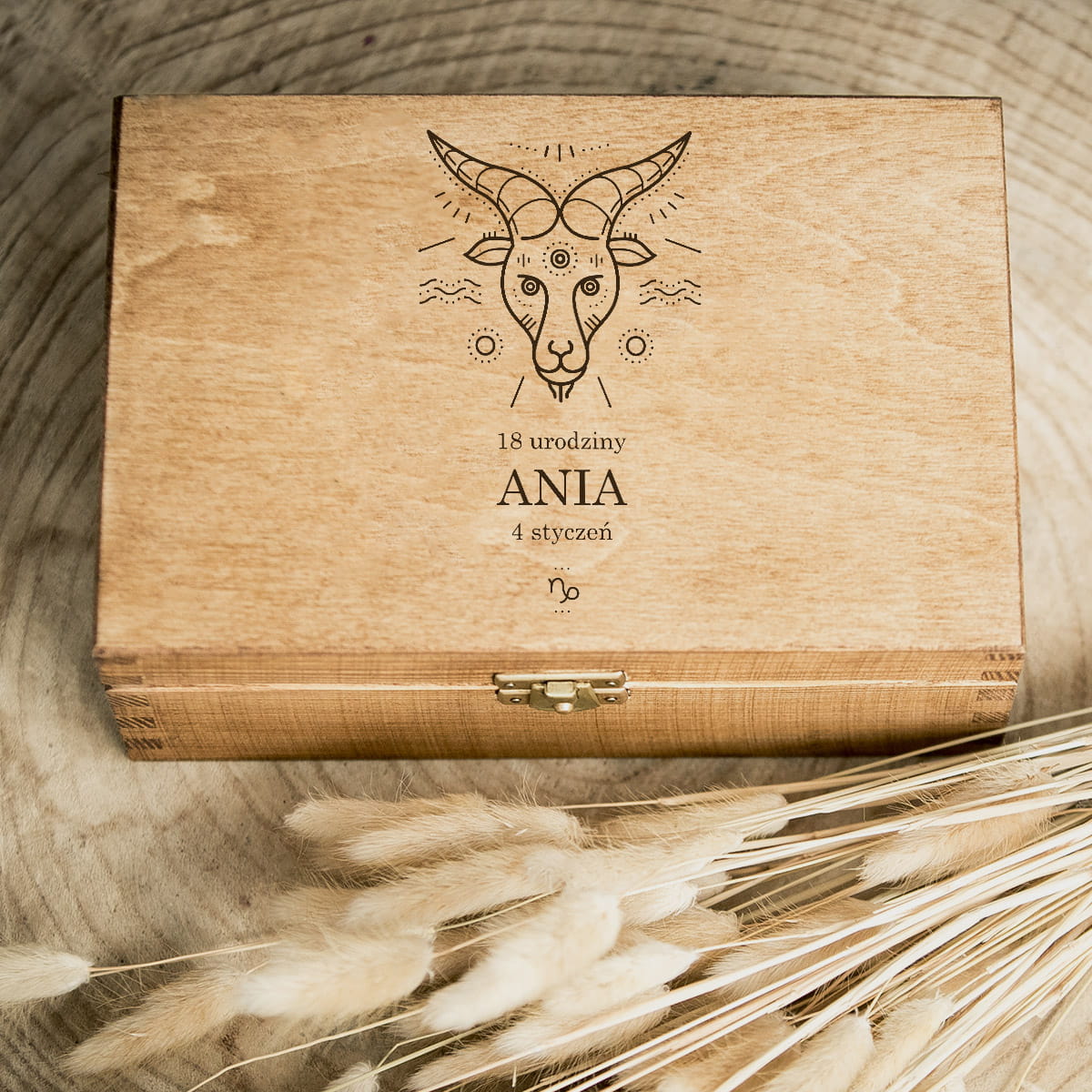 Drewniane pudełko z dedykacją na prezent na 18 urodziny