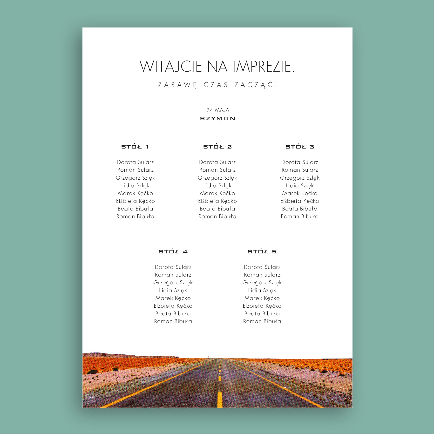 Retro plan stołów przyjęcia urodzinowego z motywem drogi