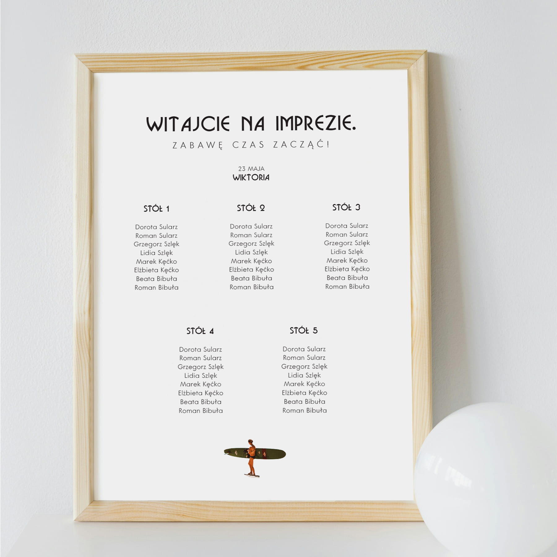 - Personalizacja: Wstawimy Twoją listę gości w nasz szablon.