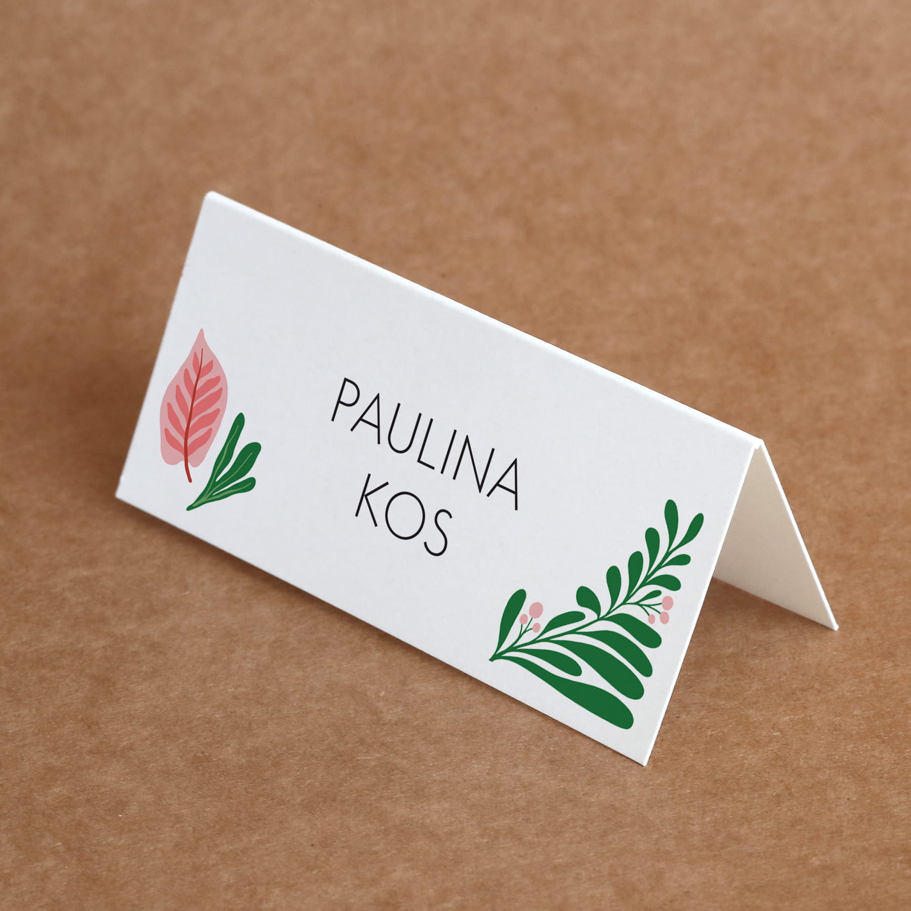 Roślinne winietki z kwiatem na przyjęcie urodzinowe
