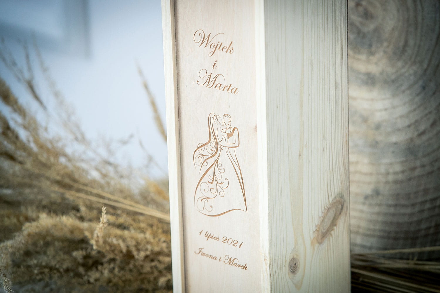 Skrzynka, pudełko na wino - wzór para młoda