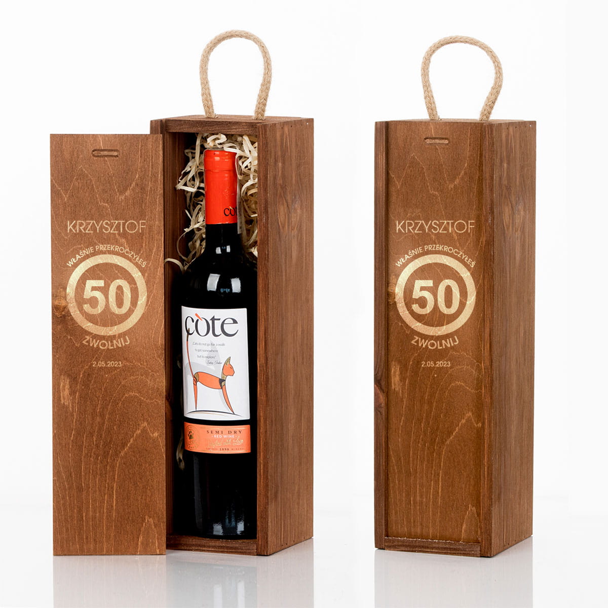 Pudełko na wino na 50 urodziny.