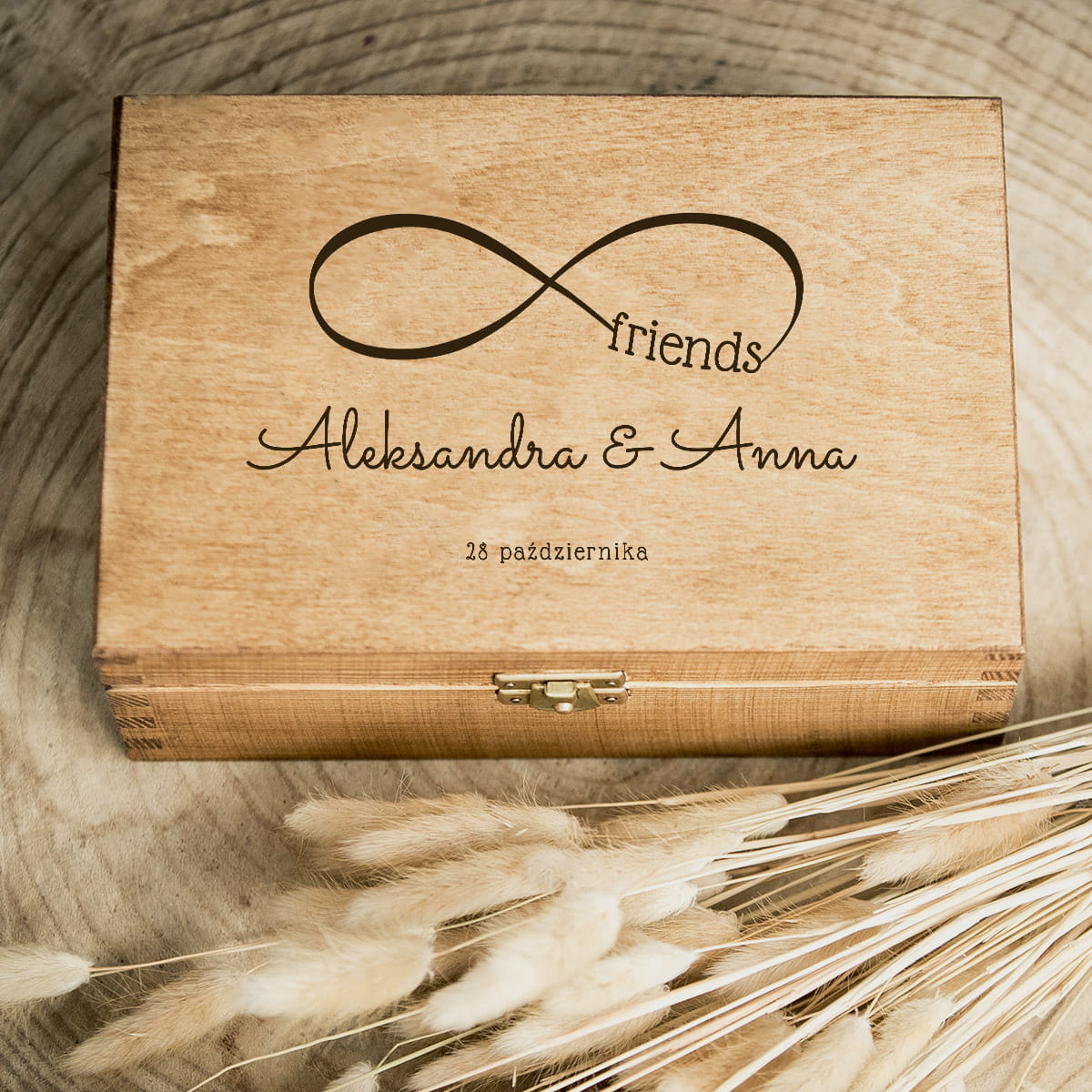 Drewniane pudełko z dedykacją na prezent dla przyjaciółki