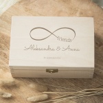 Piękne drewniane pudełko ze znakiem nieskończoności
