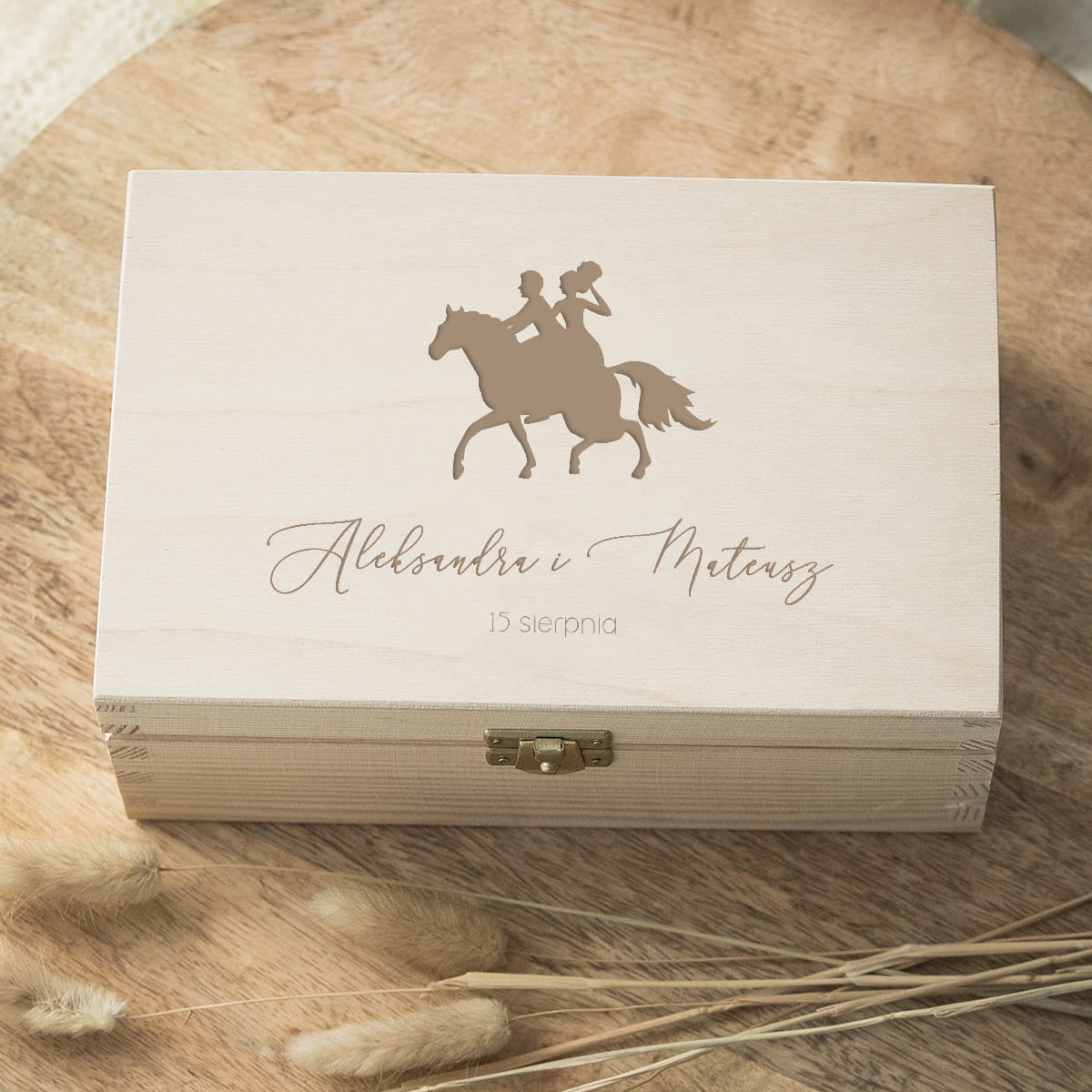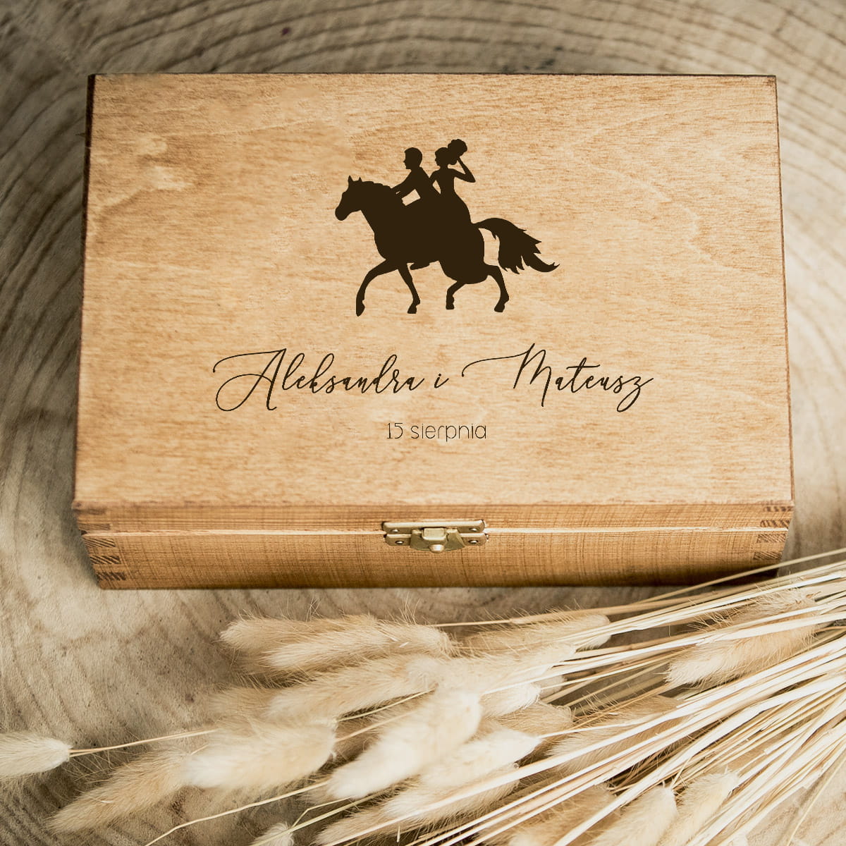 Szkatułka, pudełko z dedykacją na ślub - para na koniu