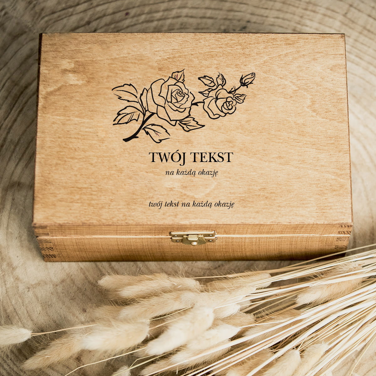 Drewniane pudełko z dedykacją na urodziny, imieniny, dzień babci, dzień mamy lub inne okazje