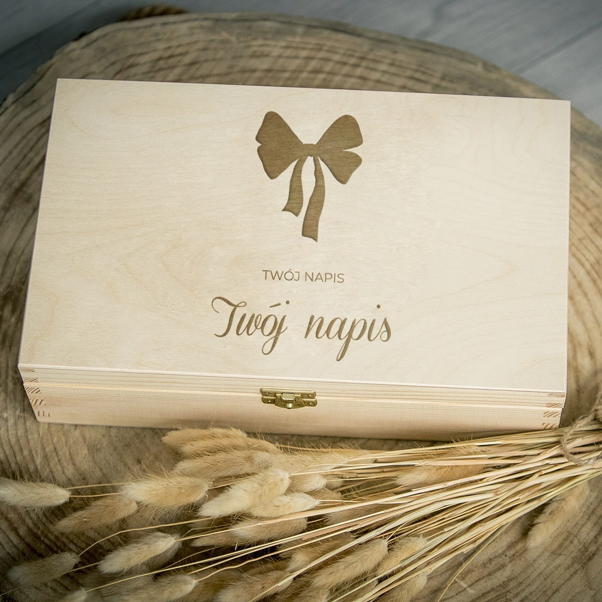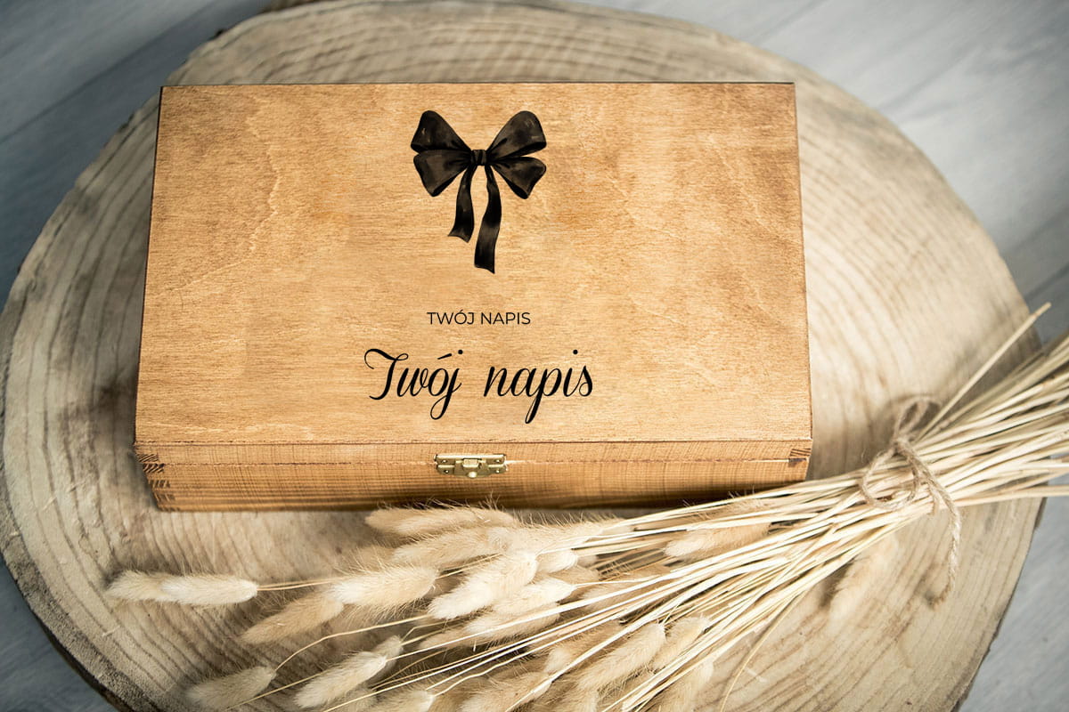 Wygląd zewnętrzny drewnianego pudełka z grawerem