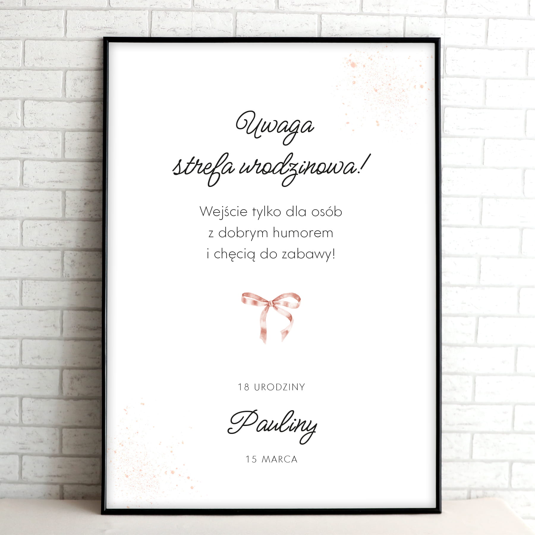 Tablica powitalna - plakat z delikatną, różową wstążką
