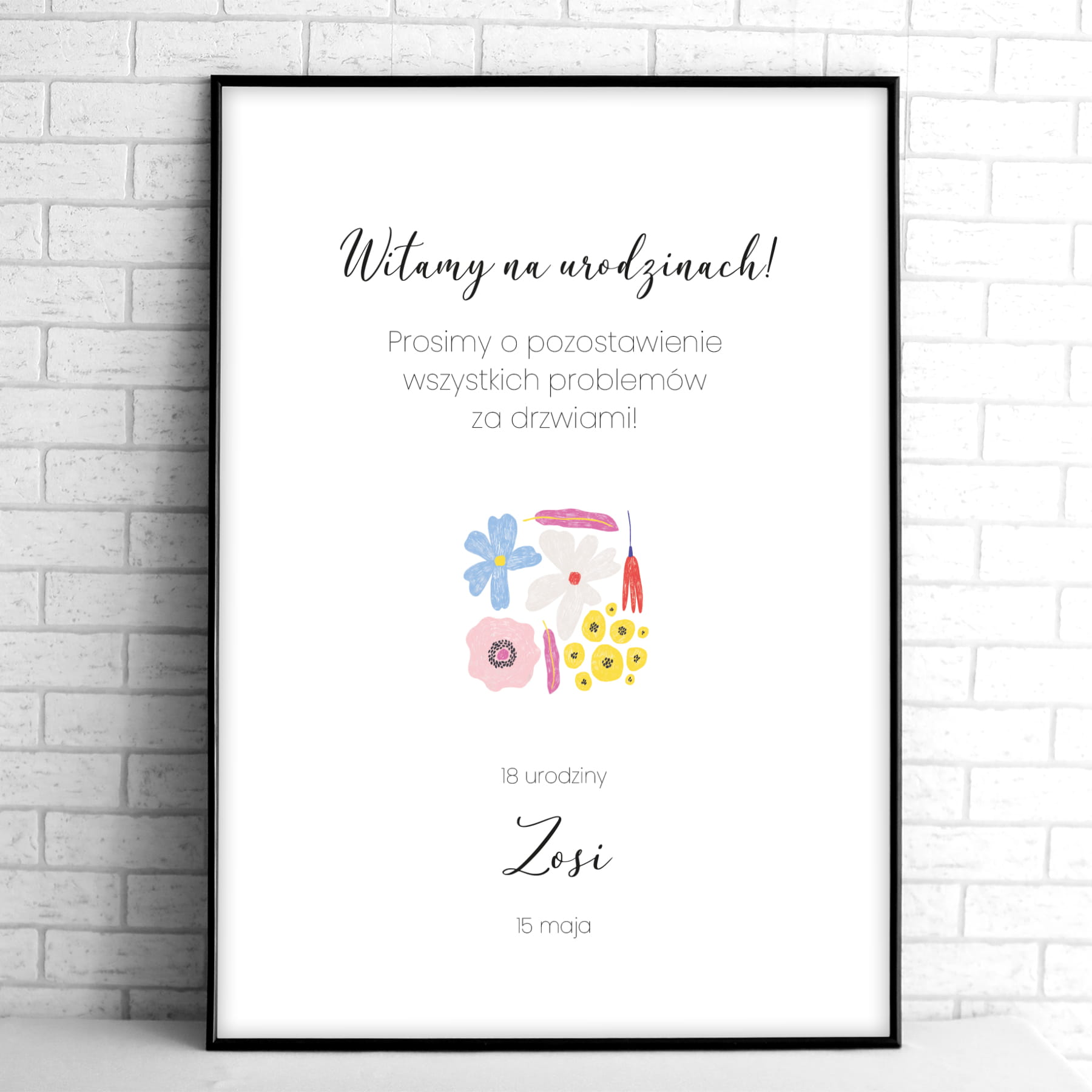 Tablica powitalna - plakat z kolorowymi kwiatami