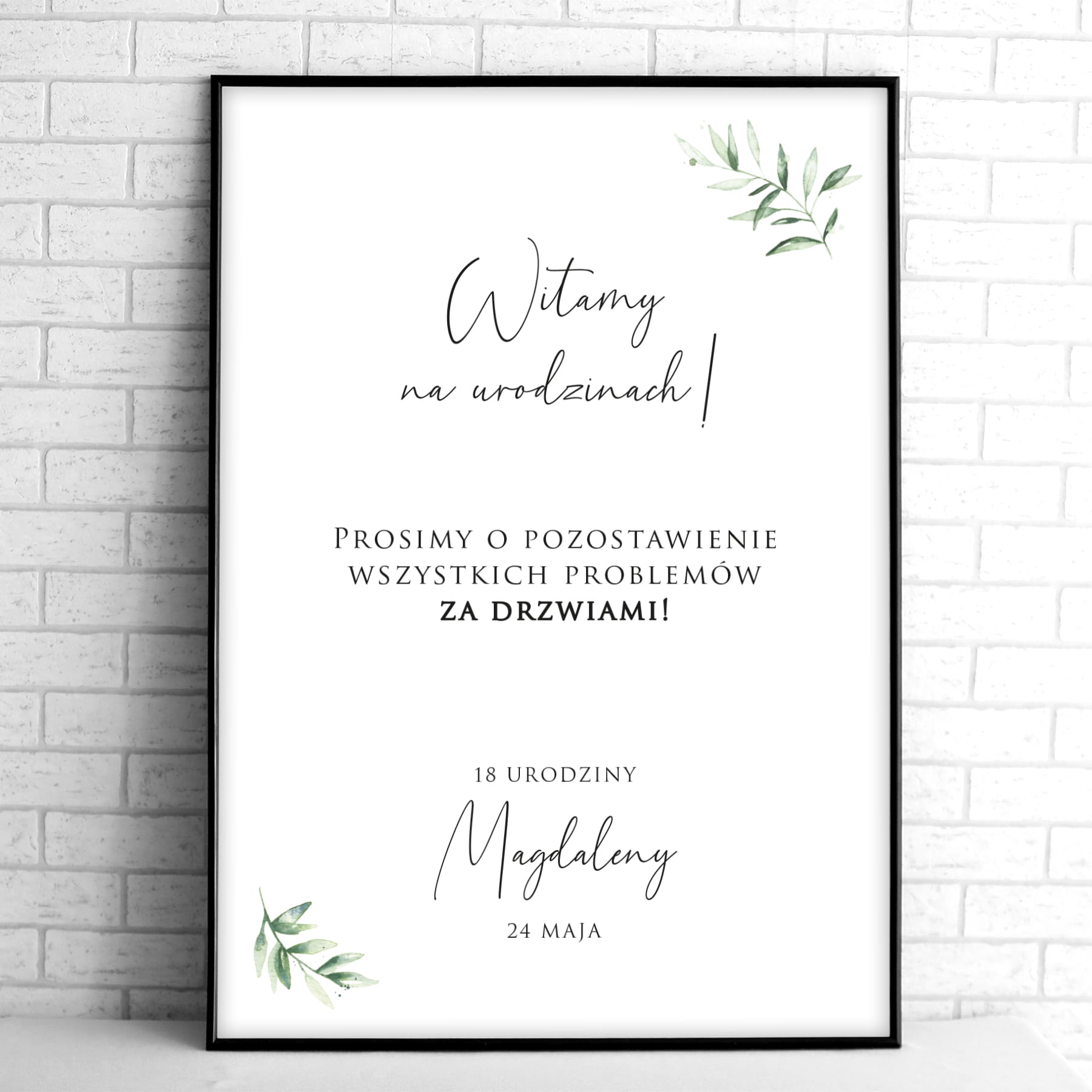 Tablice powitalne na przyjęcie urodzinowe z motywem delikatnych liści