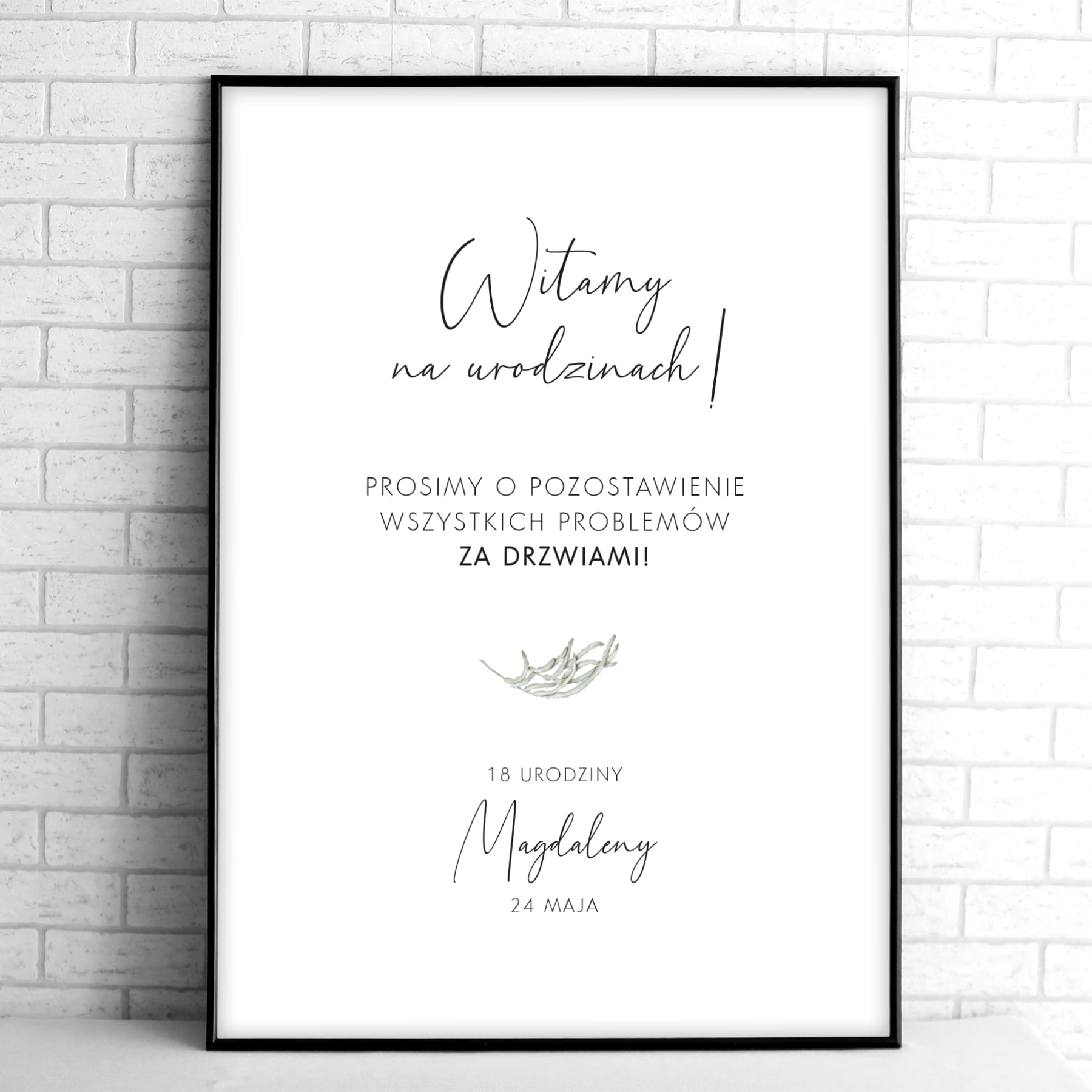 Tablice powitalne na przyjęcie urodzinowe z roślinnym motywem