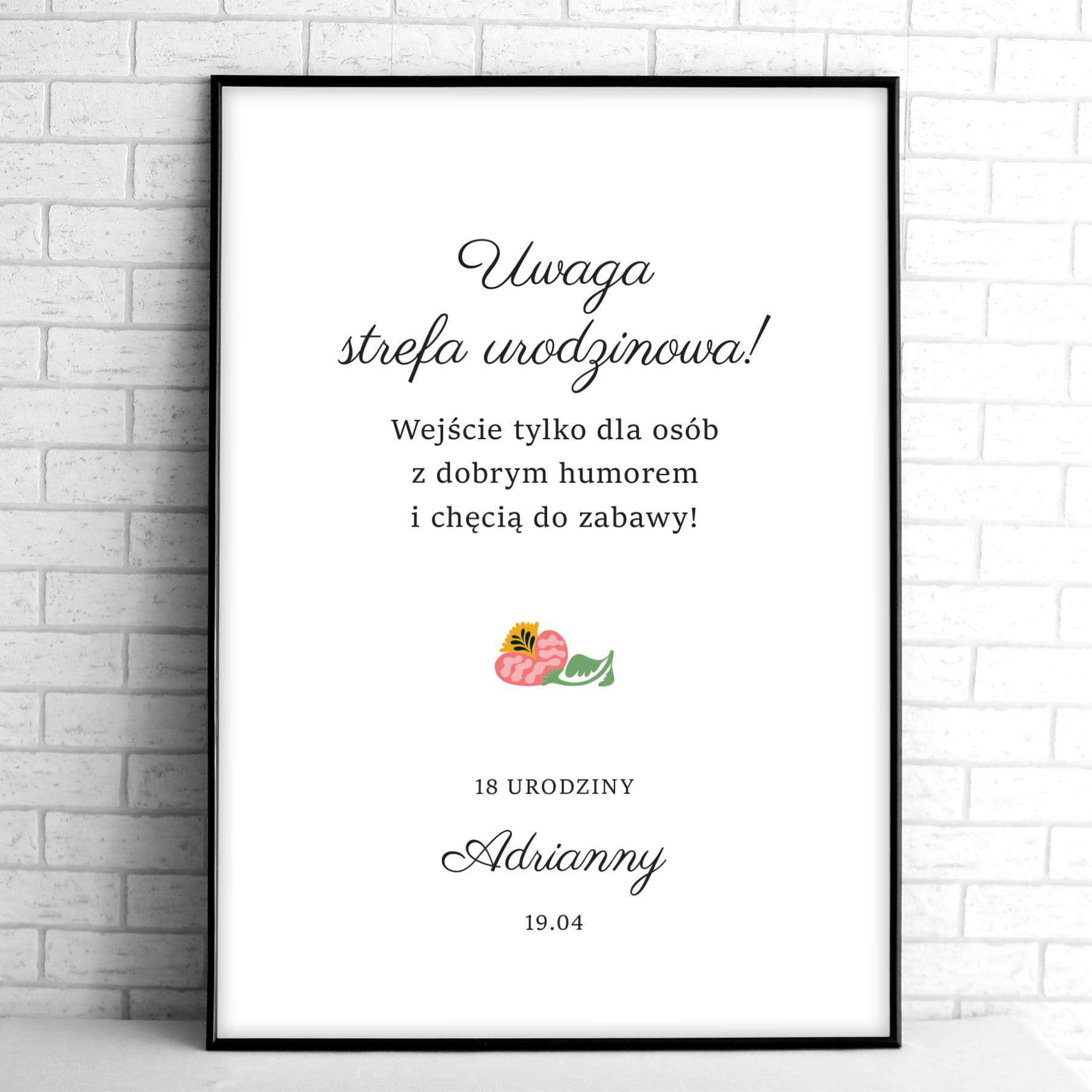 Tablice powitalne na przyjęcie urodzinowe z różowym kwiatem