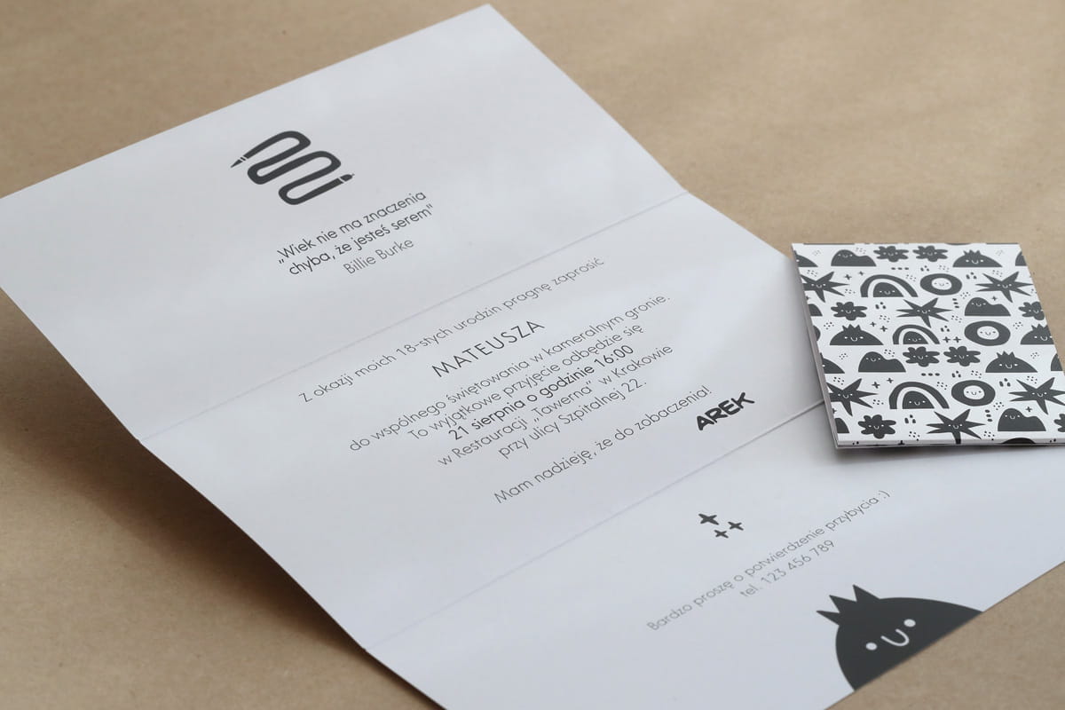 - personalizacja - jeśli dołączysz do zamówienia plik z listą gości, wstawnymi ich do zaproszeń.