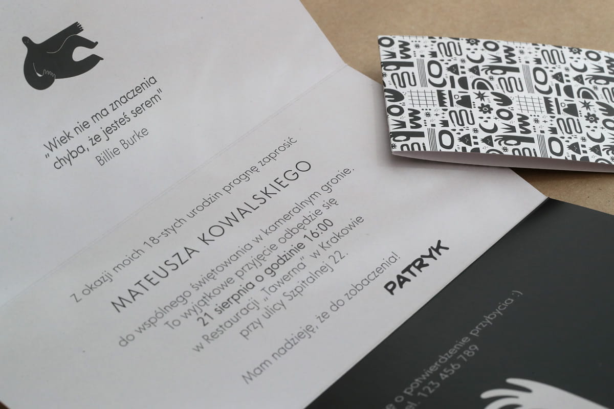 - personalizacja - jeśli dołączysz do zamówienia plik z listą gości, wstawnymi ich do zaproszeń.