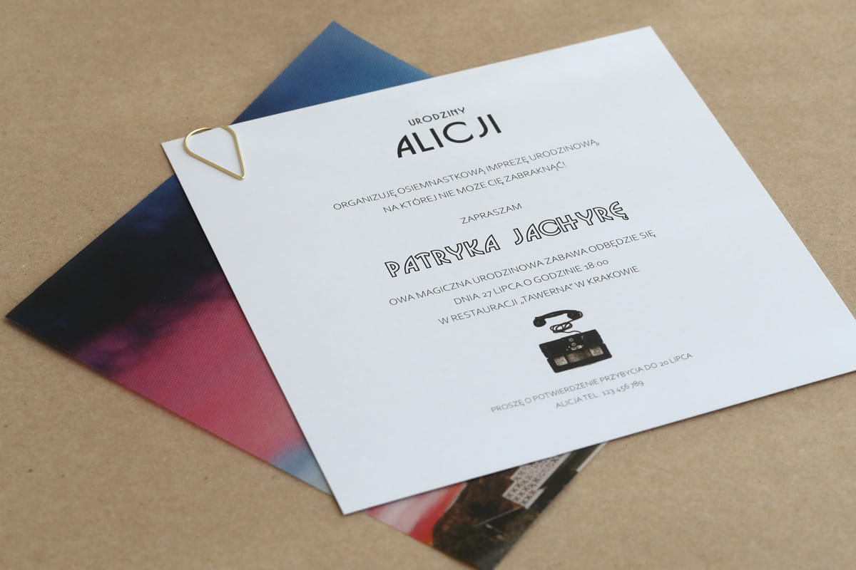 Zaproszenia urodzinowe w stylu retro z ozdobną kalką