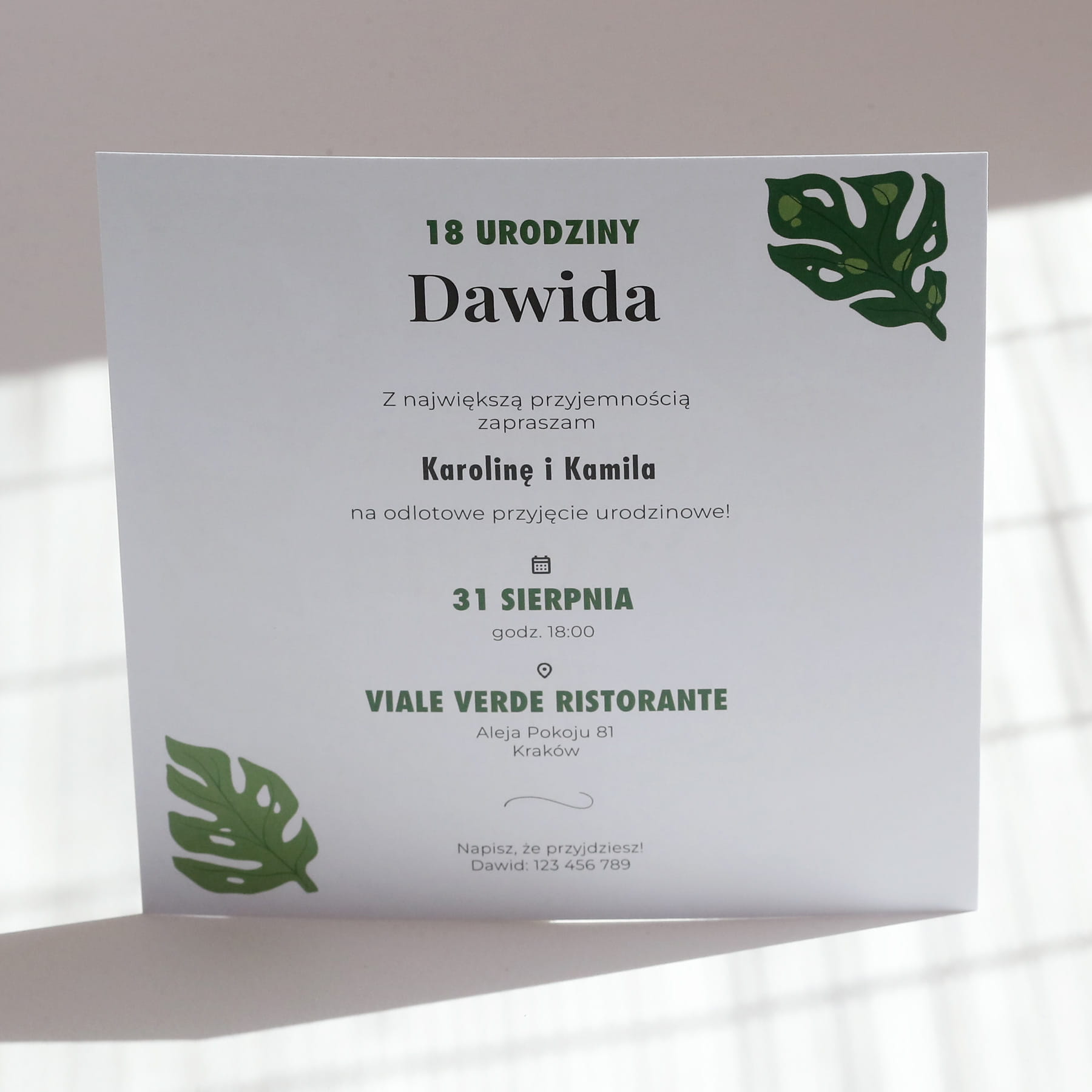 Zaproszenia na 18 urodziny z botanicznym motywem liści