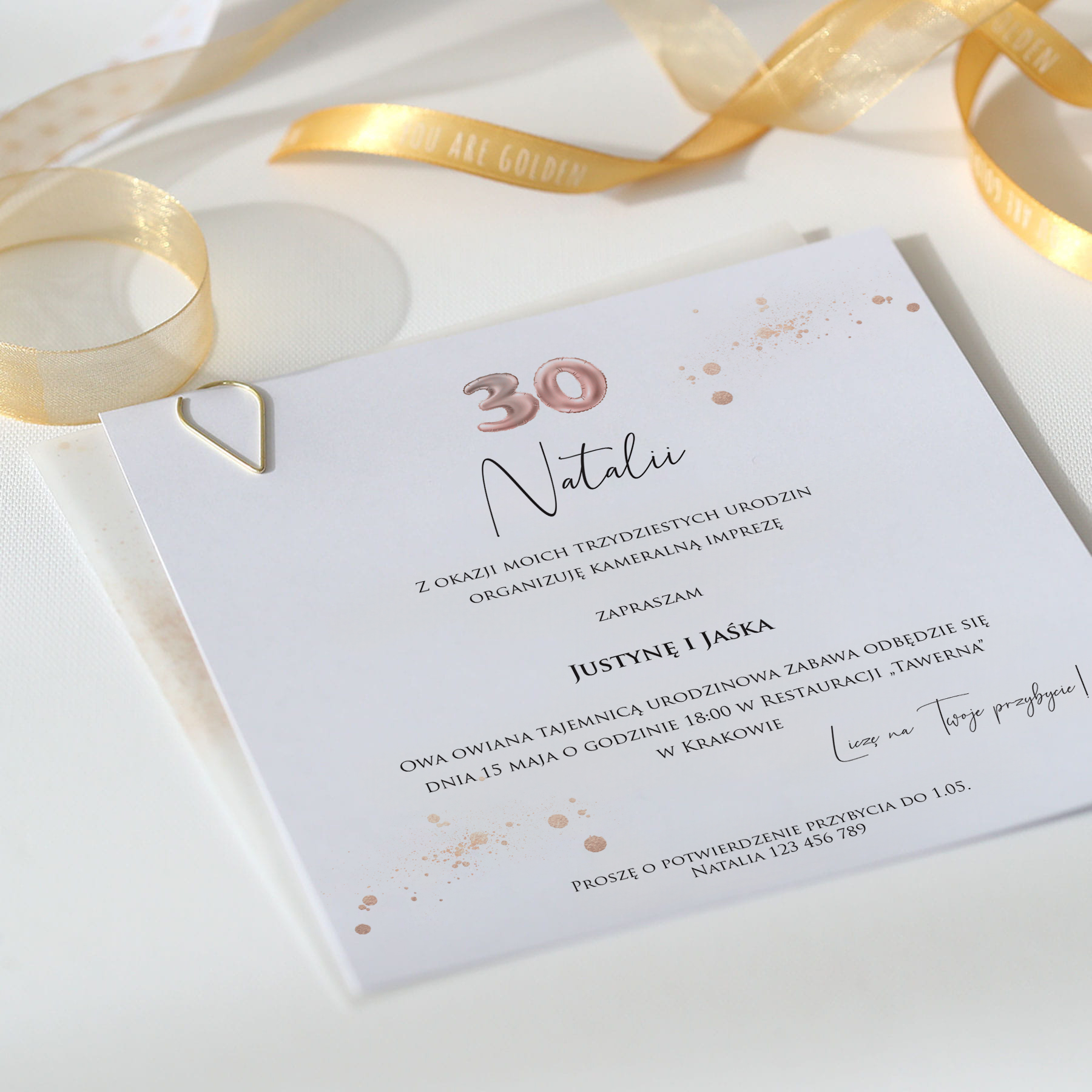 Tekst na zdjęciach jest przykładowy. Możesz przesłać nam dowolny tekst lub skorzystać z naszej bazy: Tutaj znajdziesz teksty zaproszeń na 30-ste urodziny >>> wybierz najlepszy dla siebie, uzupełnij swoimi danymi i dołącz go w formie tekstu do zamówienia.