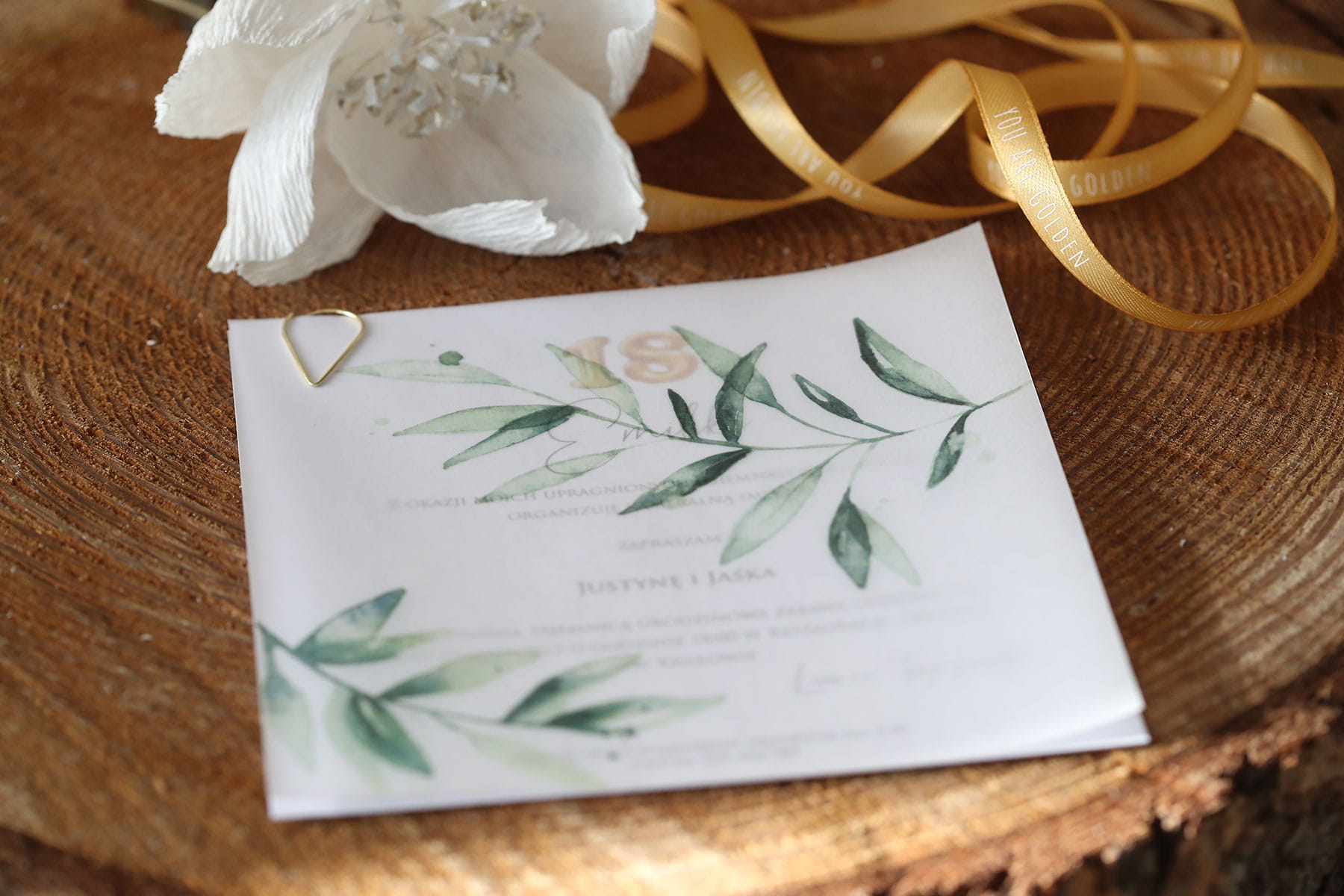 Zaproszenia z motywem delikatnych liści na 18 urodziny