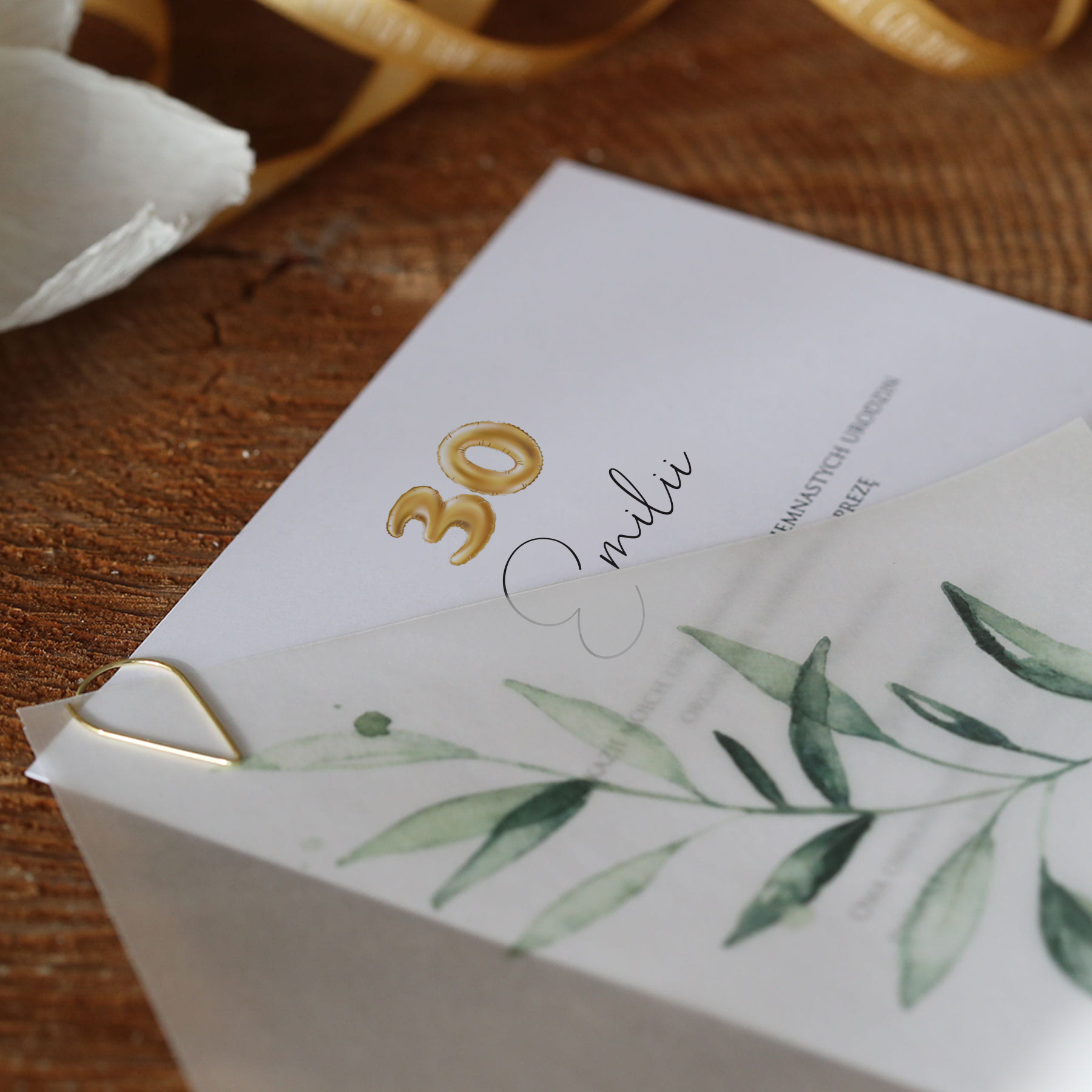 Zaproszenia z motywem delikatnych liści na 30 urodziny