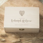 Piękne drewniane pudełko na prezent dla Rodziców z motywem serca z drzewa