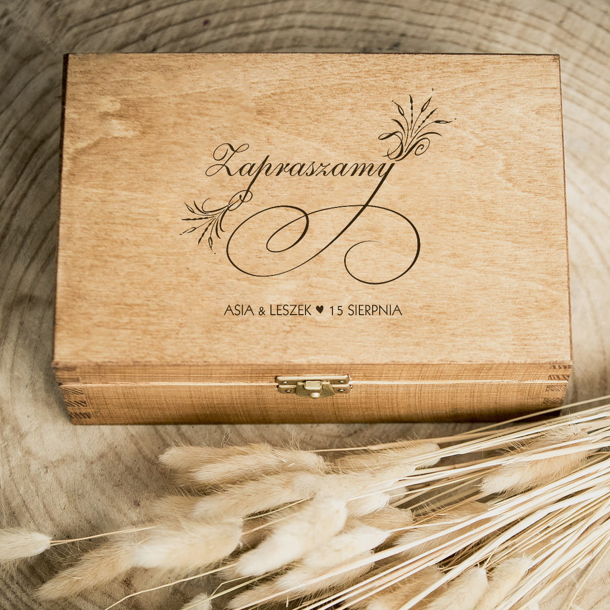 Pudełko ma wszystko, czego potrzebujesz. Indywidualny grawer, środek z dedykacją jeśli chcesz, wypełnienie w postaci sianka.