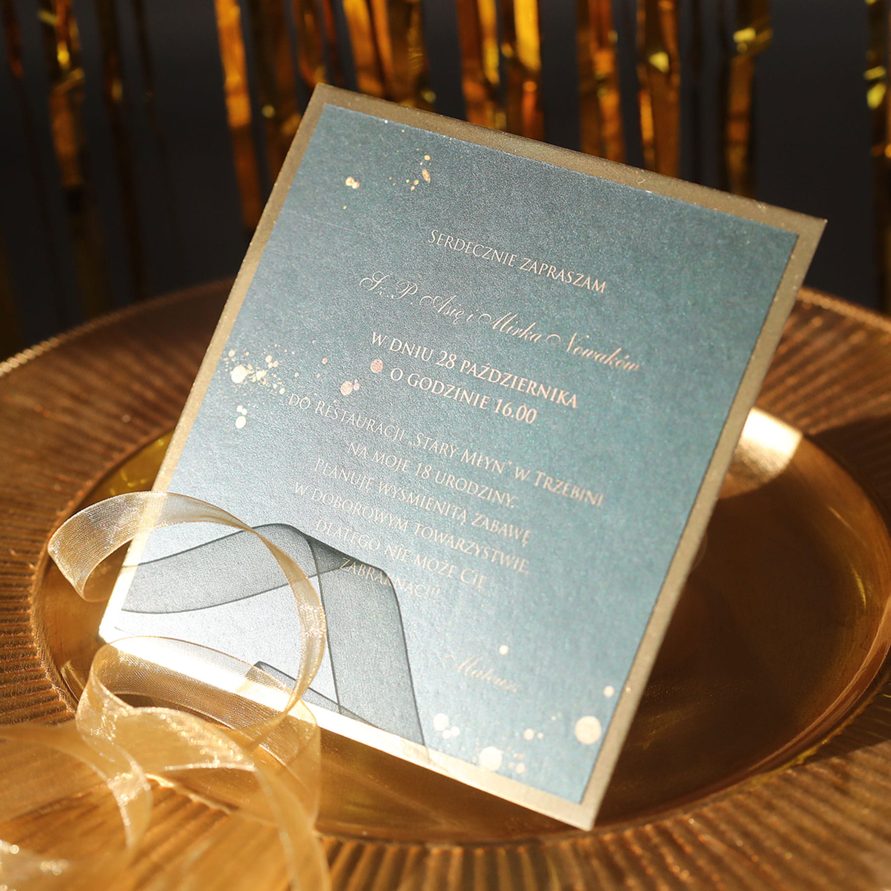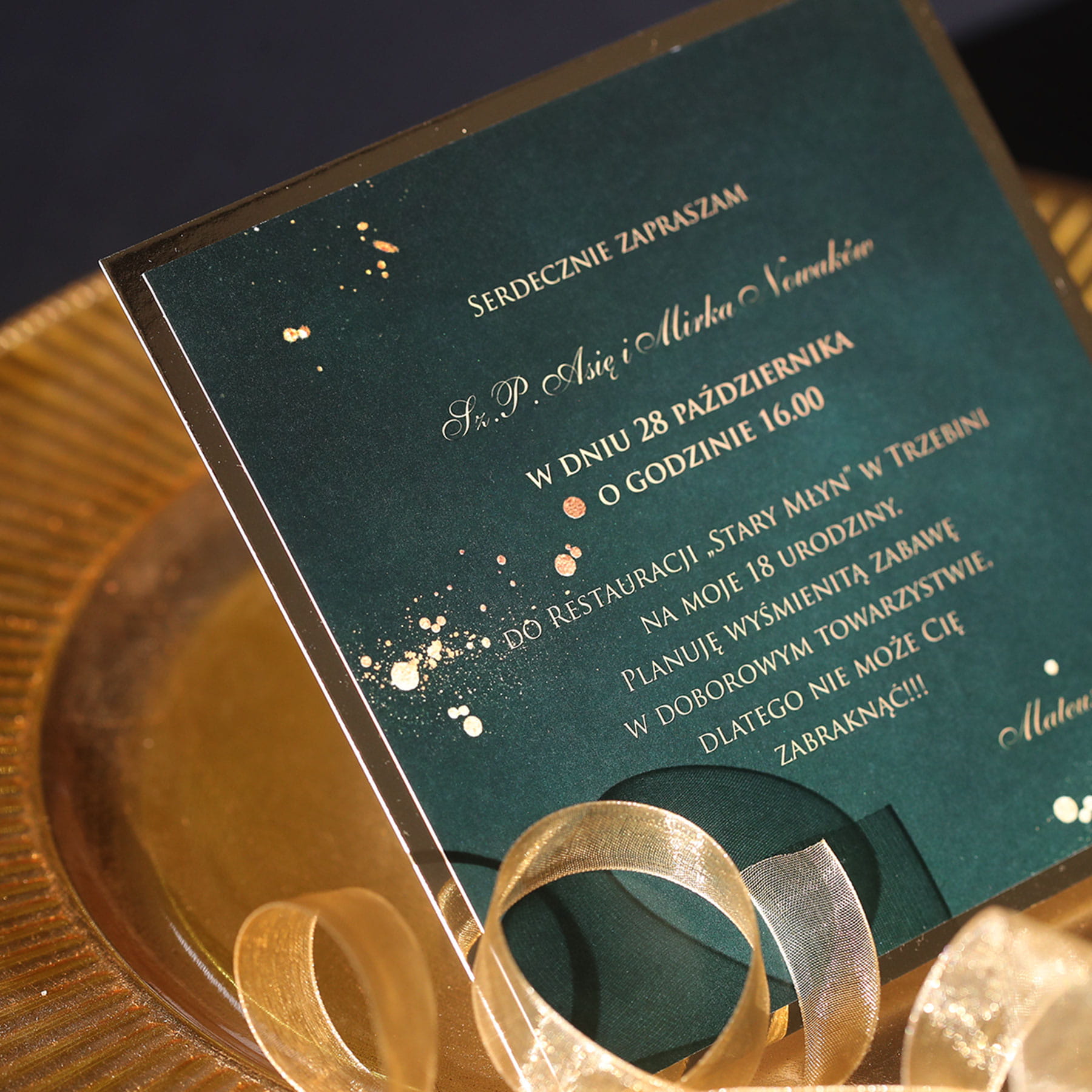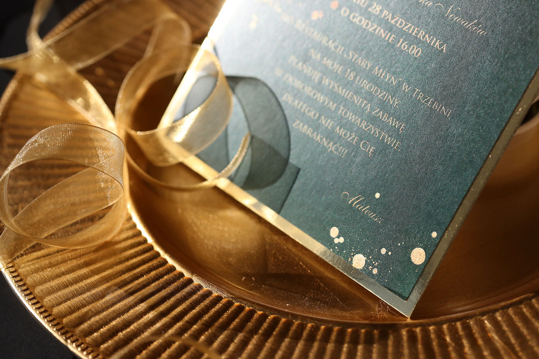 Złoto-szmaragdowe zaproszenia na 18 urodziny